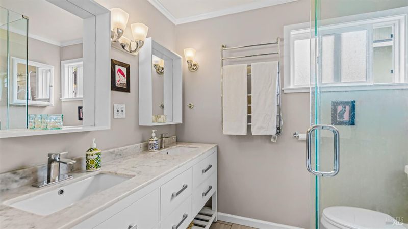 Gorgeous and dramatic, this Terra Linda view home backs up to open space, providing an outdoor oasis for extreme California living. Embracing its surroundings, the layout offers a seamless flow between indoor spaces flooded with natural light and multiple outdoor spaces, including a spectacular vaulted Pavilion for outdoor entertainment and gatherings. The main floor centers around a beautiful eat-in chef's kitchen with stone counters, newer stainless-steel appliances, a large center island, and newer porcelain tile floors. All flowing out to the backyard through dual-pane sliding doors. The kitchen leads into a sizeable family room with incredible vistas of the surrounding hills anchored by a cozy wood burning fireplace, relaxing at the end of the day. Additionally, you will find three sizeable bedrooms and two remodeled bathrooms on the main level, including a well-appointed primary suite complete with a remodeled bathroom and walk-in closet. Downstairs, you will find a fantastic multi-purpose family room/fourth bedroom/gym boasting its own third remodeled bathroom and closet. Renovations and upgrades include: 200 Amp electrical service, owned solar, wide plank white oak wood floors, dual paned windows and sliders, newer AC and Heat, a two-car garage, amazing large storage space, and more. All this in a spectacular one-of-a-kind setting, close to incredible hiking and biking trails, award-winning schools, and a short distance to Hwy. 101 for an easy SF commute.