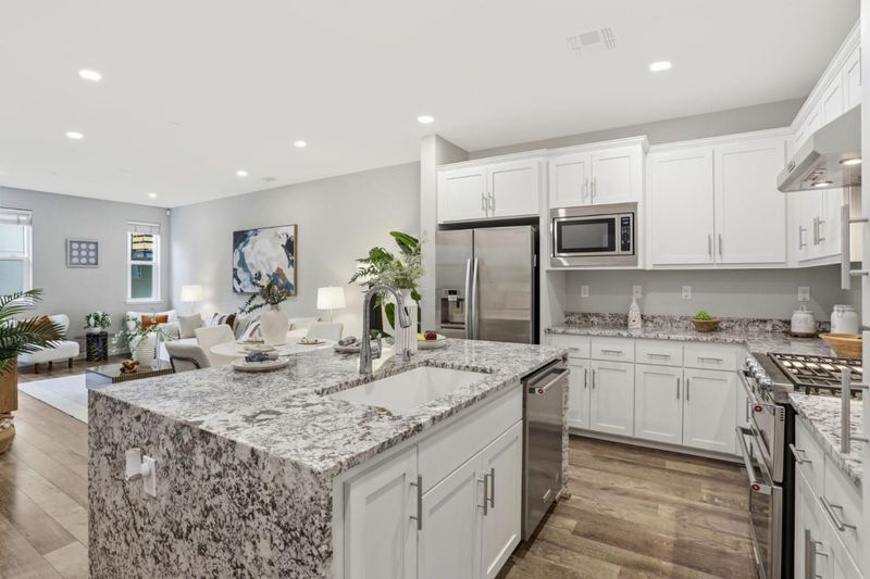 - Countertop - Quartz, Dishwasher, Garbage Disposal, Island, Microwave, Oven - Gas, Oven Range, Refrigerator