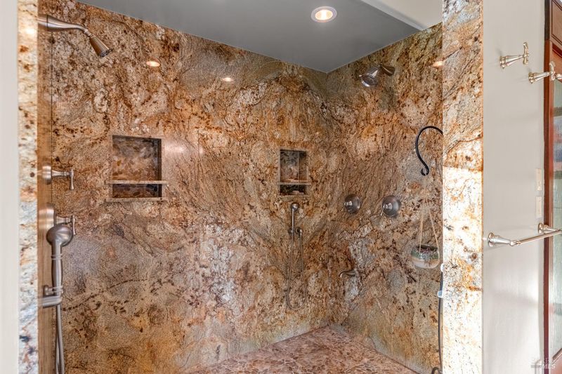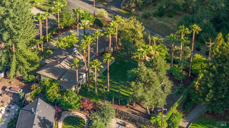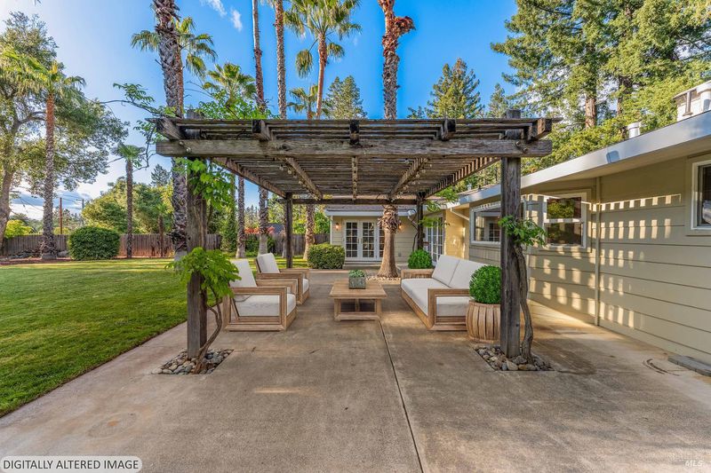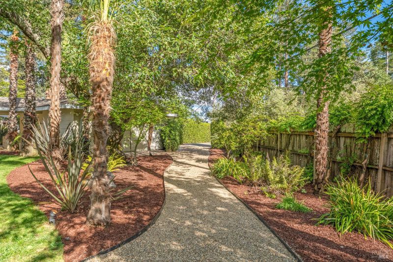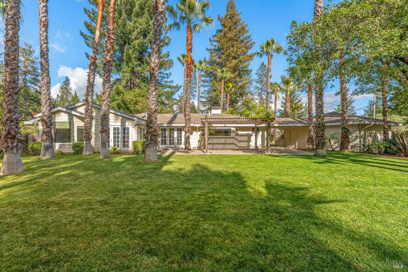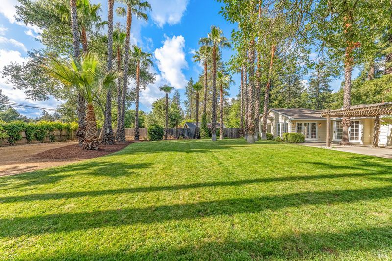 Set above the fog line on Howell Mountain, this single-level residence sits on a quiet corner lot within Angwin's established Sunset Drive neighborhood. At approximately 1,500' of elevation within the Howell Mountain AVA, this property offers a distinct mountain setting just minutes to St. Helena. The grounds span just over half an acre of level, usable land, rare for the area, with mature trees, expansive lawn, trellised seating area, and pergola. French doors from the dining area open directly to the rear grounds for easy indoor-outdoor living. The home measures approximately 2,454 square feet across a single level with no interior stairs. The living room is anchored by a wood-burning fireplace with stacked stone surround. The kitchen includes granite countertops, center island, gas cooktop, built-in oven, and views to the rear yard. The primary suite features a walk-in closet, sitting area, and direct outdoor access. The en suite bath includes double sinks, soaking tub, and double-headed shower. A sunroom off the suite offers flexible space for an office, retreat, or convenient nursery. Two additional bedrooms, one full bath, and a powder room complete the main residence, along with ground-floor laundry. A detached two-car garage with covered breezeway and additional off-street parking provides convenience for guests. This is an uncommon Howell Mountain setting defined by level ground, privacy, and proximity to St. Helena.