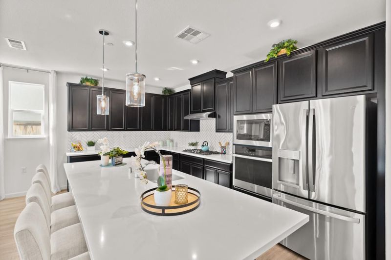 - Cooktop - Gas, Dishwasher, Hood Over Range, Island with Sink, Microwave, Oven - Built-In, Refrigerator