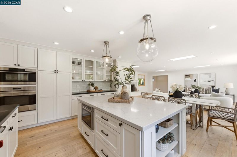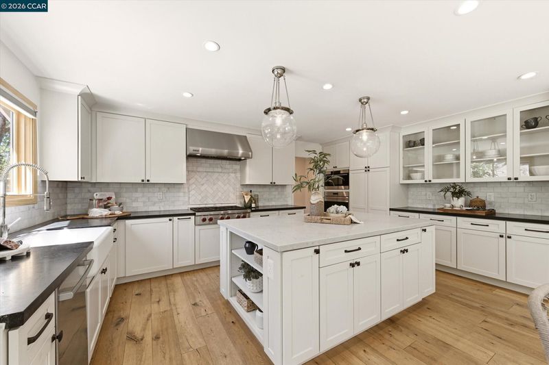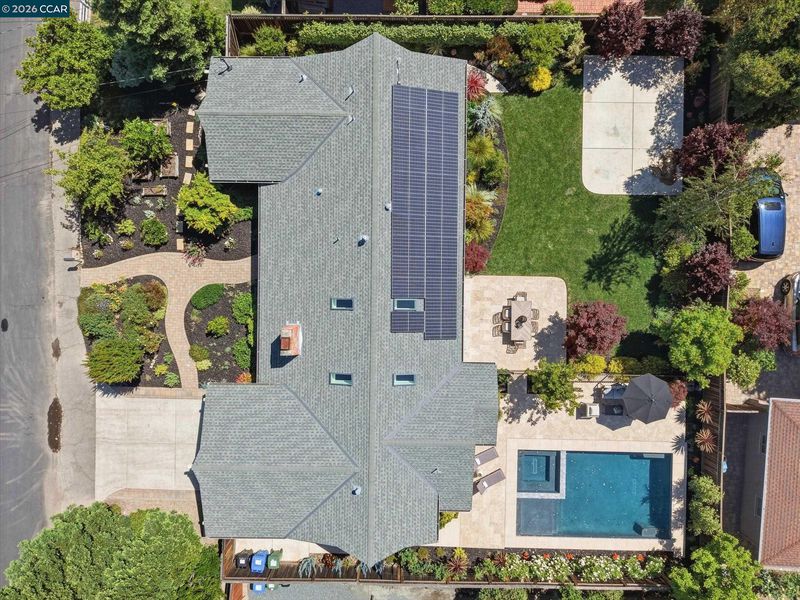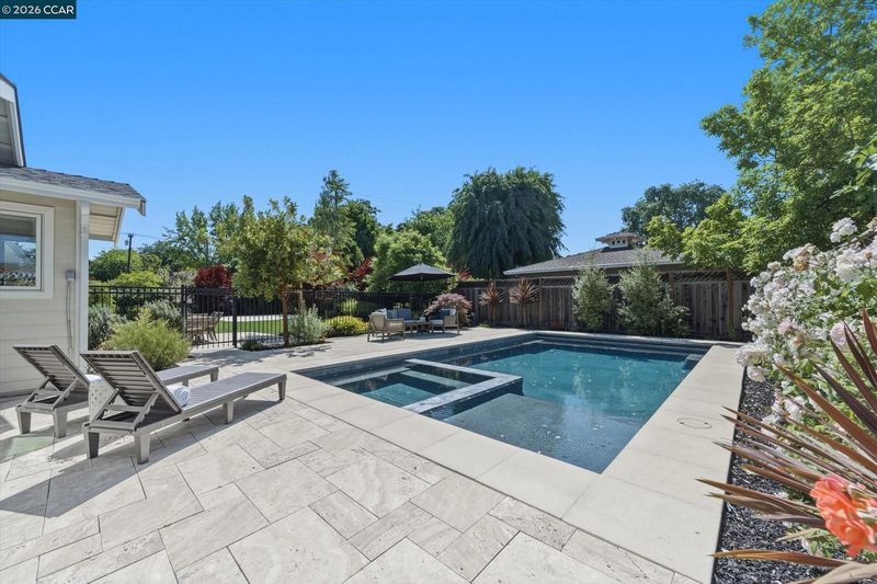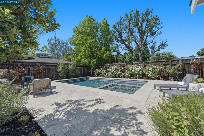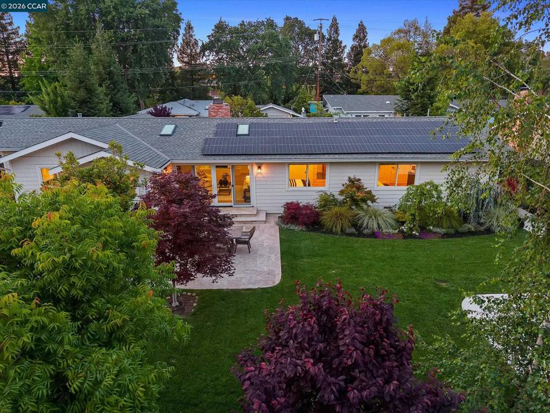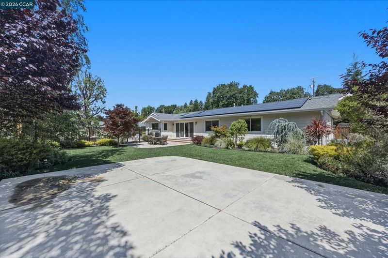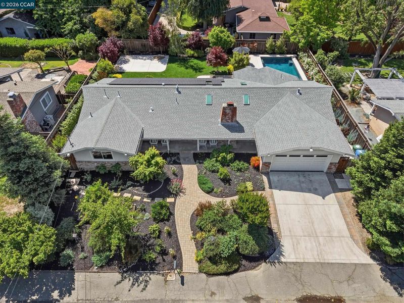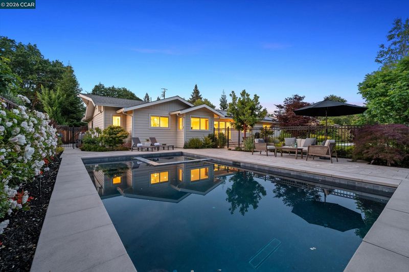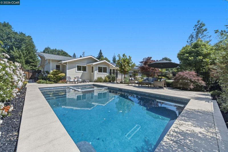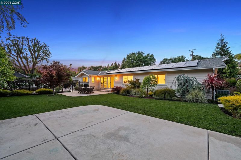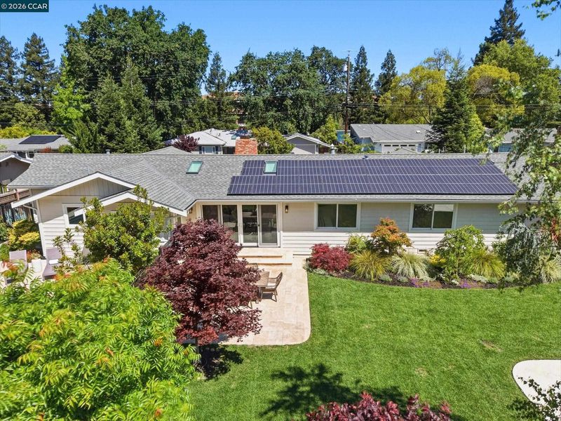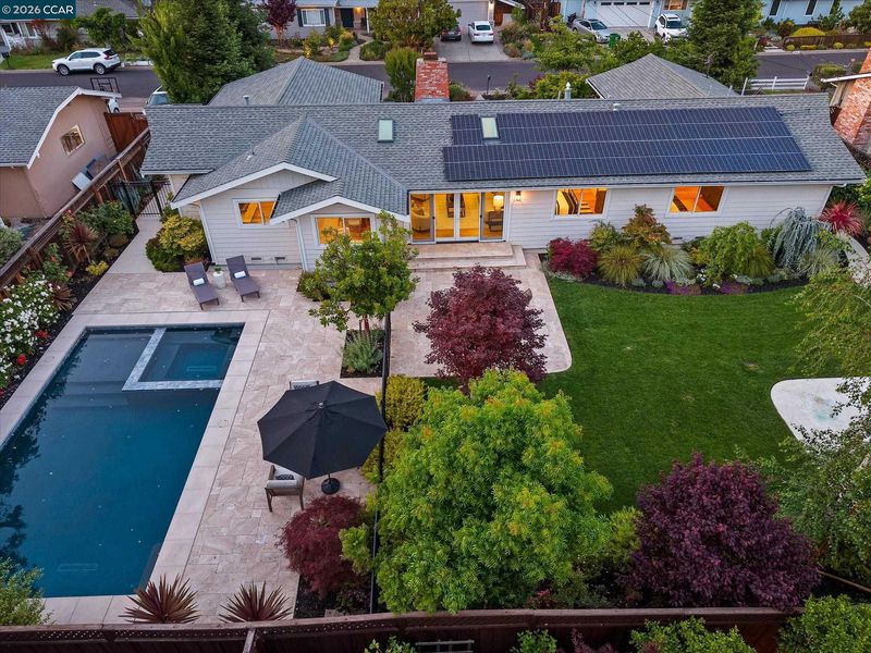 Turnkey single-story living on a quiet street in Walnut Creek. Set on a flat quarter-acre lot just minutes from downtown Walnut Creek and Highway 680, with BART and Heather Farms Park both walkable from the front door, this fully reimagined 3-bedroom, 2.5-bathroom residence makes commuting easy while delivering nearly 2,000 square feet of light-filled, open-concept living space designed for both everyday comfort and entertaining. A $500K+ permitted remodel ~8 years ago transformed every surface with intention: a chef's kitchen anchored by a Wolf cooktop, Sub-Zero refrigerator, and Wolf double wall ovens surrounded by custom Decora cabinetry and solid-surface counters; Duchateau engineered hardwood floors flowing through every room; windows framing garden views; and a spacious primary suite with a custom-designed bath that feels like a private retreat. Step outside and the magic continues. A professionally landscaped backyard opens to level lawn, mature gardens, and a sparkling pool - installed within the last five years - featuring an automatic pool cover and secure child-safety fencing. This is the backyard you've been searching for: flat, private, and made for everything from Saturday morning coffee to summer entertaining. Future-ready features lower your costs and footprint: 23 owned solar panels and an EV charging station keep annual PG&E electric charges to approximately $1,500, inclusive of EV charging - a savings that compounds every year. Additional highlights include an attached two-car garage, contemporary and recessed lighting throughout, and a peaceful setting on a non-through street.