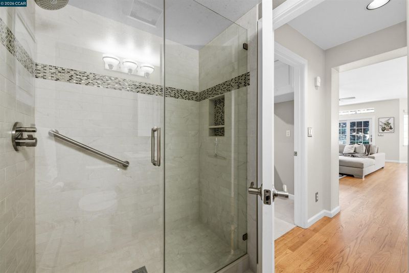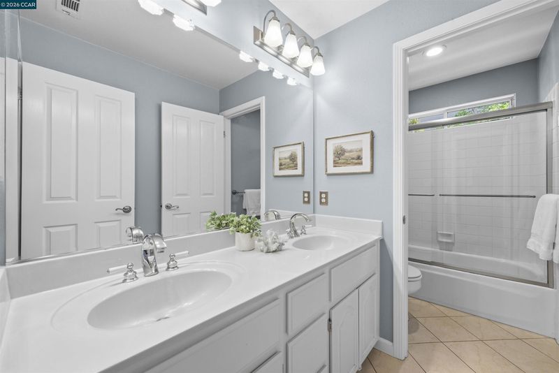 - Shower Over Tub, Solid Surface, Split Bath, Stall Shower, Tile, Double Vanity, Window
