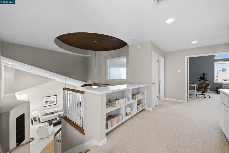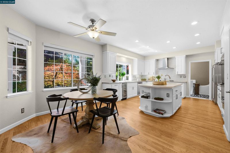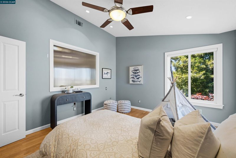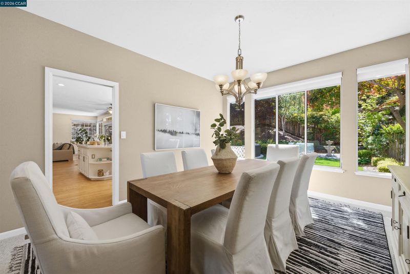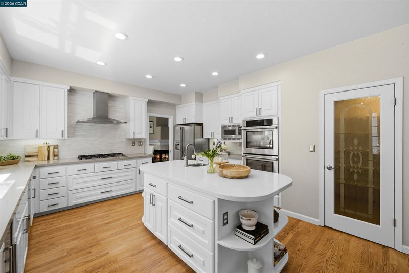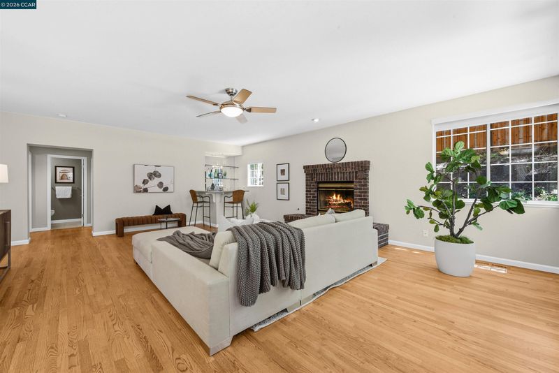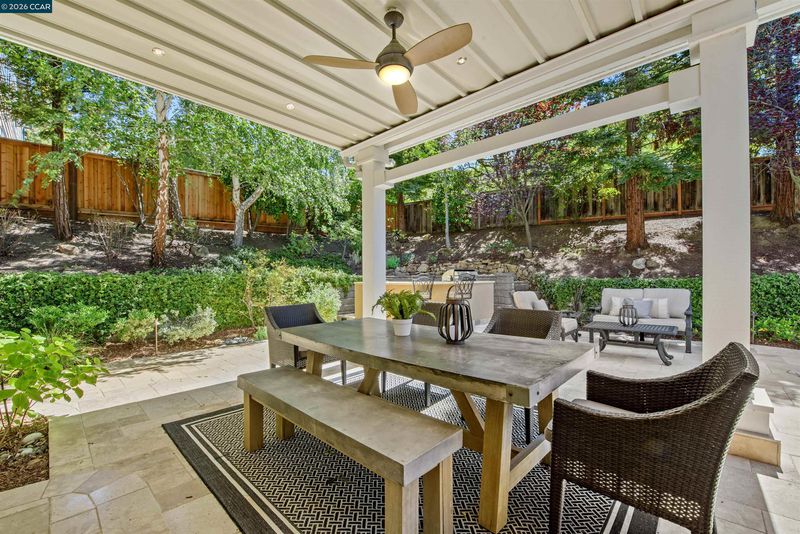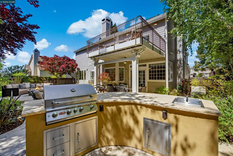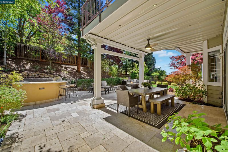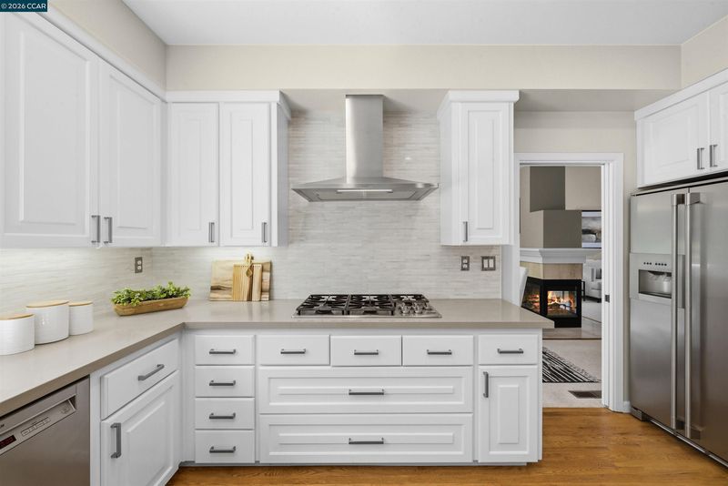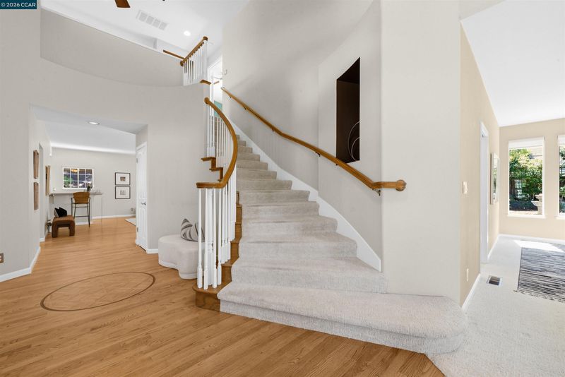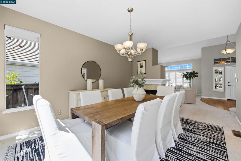 Beautifully updated throughout, this 5-bed, 3-bath home offers 3,606 sq ft of living space. A light-filled entry with a curved staircase leads into a formal living room with soaring ceilings, plantation shutters and a two-sided fireplace shared with the dining room, where a bank of tall windows enhances the natural light. The remodeled kitchen features quartz countertops, a large island, walk-in pantry, dual sinks, wine cooler, Dacor cooktop and double Electrolux ovens, flowing into a spacious family room with hardwood floors, brick fireplace and backyard access. A remodeled bar with seating and two wine coolers enhances entertaining. Main level includes a guest bedroom, remodeled laundry room and bath with walk-in shower. Upstairs, the primary suite offers a sitting area, private deck with valley views, and a two-way fireplace into the spa-like bath with soaking tub, walk-in shower, dual vanities and large closet. Additional bedrooms are bright and spacious with views of Clayton and Suisun Bay. Enjoy a private resort style backyard with travertine hardscape, built-in BBQ/bar, firepit, fountain, covered patio and synthetic turf. Upgraded garage with epoxy floors and cabinetry, plus solar. Minutes to trails, shopping and dining, this elegant home offers space and thoughtful upgrades.