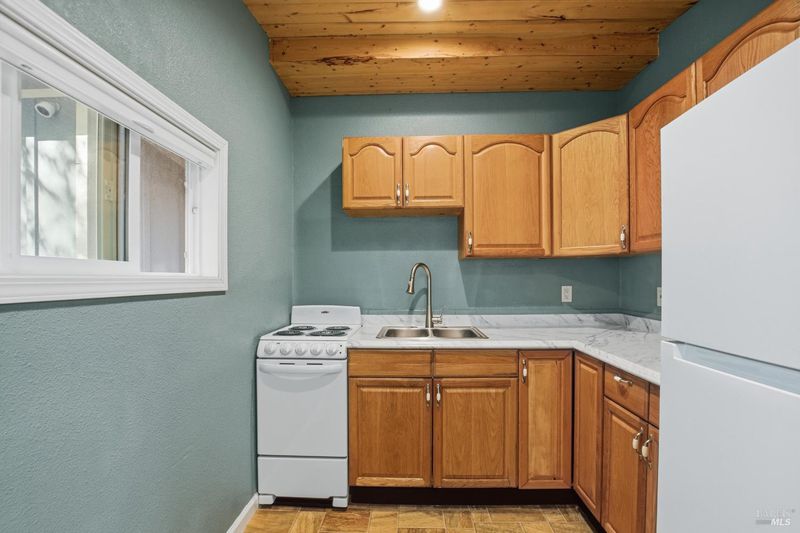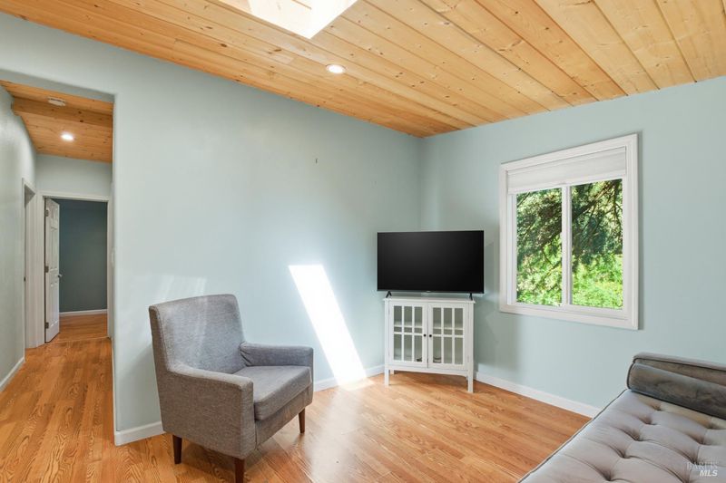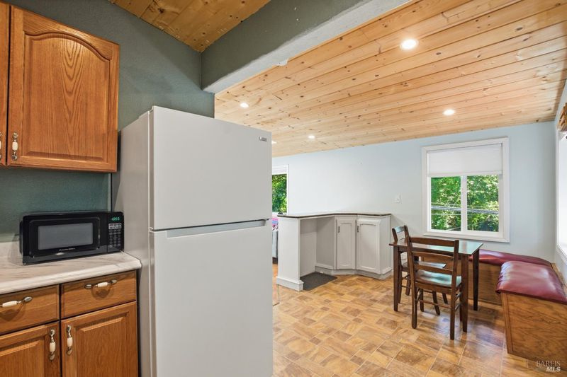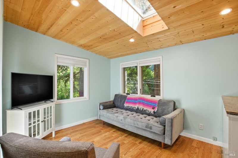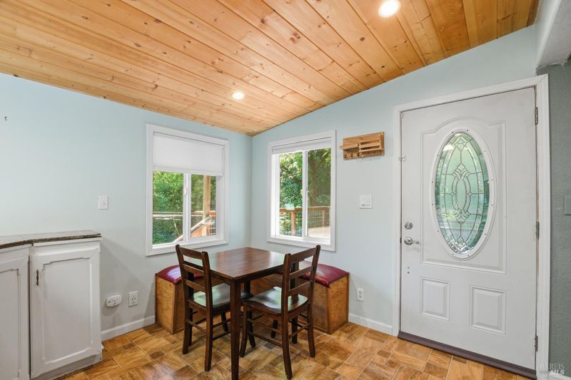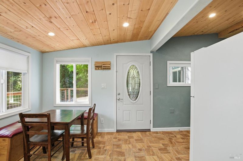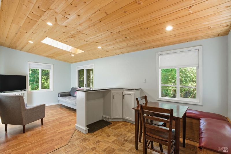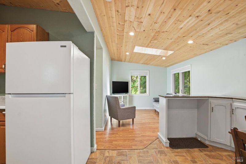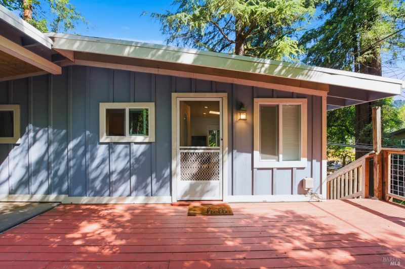 Tucked among the redwoods in the heart of Forestville, this charming 2-bedroom, 1-bath home offers the perfect blend of character, functionality, and Russian River lifestyle. Thoughtfully lifted the home provides peace of mind while keeping you close to all the natural beauty the area has to offer. Step inside to discover warm wood beam ceilings, a vaulted skylight, and a light-filled living area that feels like a true forest sanctuary. The open kitchen flows naturally into the living space, with tree-framed windows bringing the outside in at every turn. Enjoy morning coffee or evening sunsets from the expansive deck - your own private perch among the trees. A separate utility room with washer and dryer adds everyday convenience, while a brand new roof means one less thing to worry about. Whether you're looking for a full-time residence, weekend escape, or investment near the river, this property delivers on all fronts.