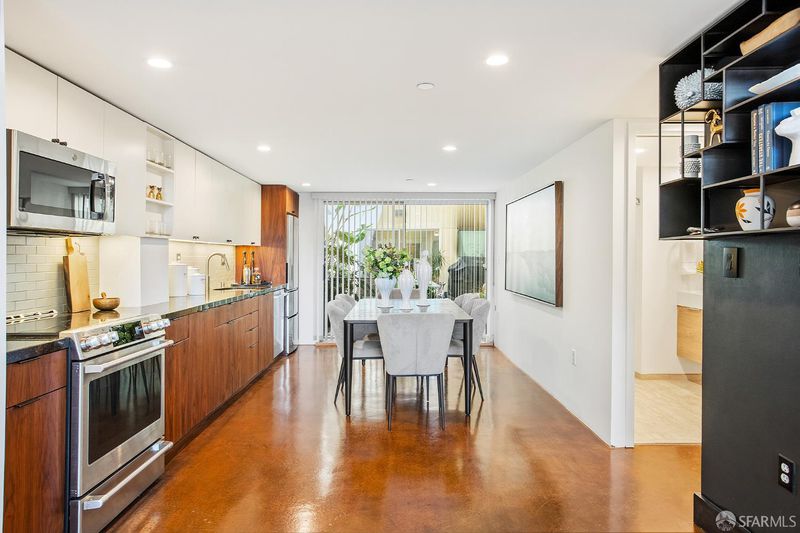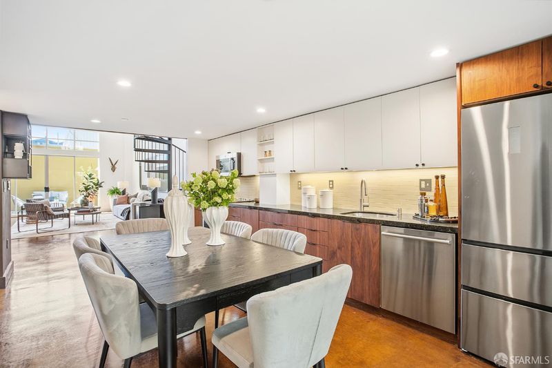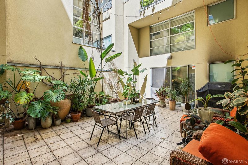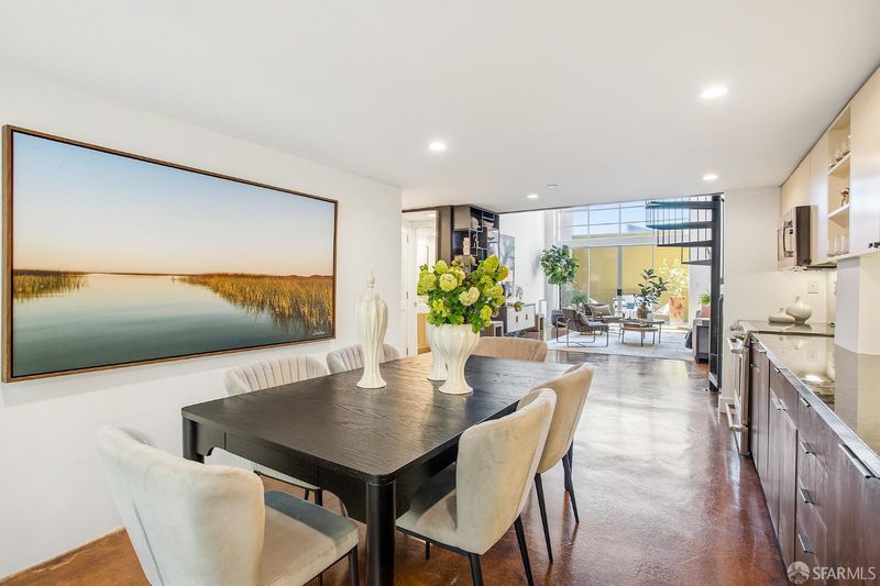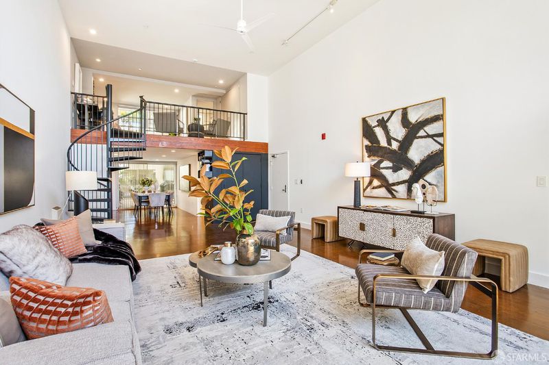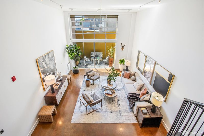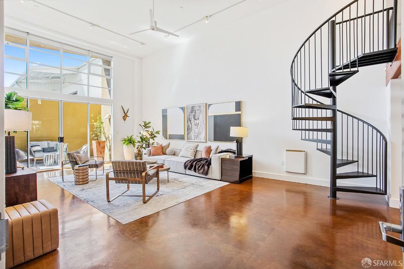 A rare double-height loft in the heart of Dogpatch's arts corridor quiet, luminous, and designed with intention. 1,100 sq ft (per tax records), 1 bed/2 bath, with a sculptural spiral staircase, soaring ceilings, and polished stained concrete floors the color of old leather. The open living area fills with light from north and south and looks onto a private walled patio your own outdoor room, bounded and tranquil. The sleeping loft above offers a spacious, intimate retreat with a sitting area, European-style main bath, and interior courtyard views. The designed kitchen features an induction range with convection oven and warming drawer, 3-rack dishwasher, custom walnut cabinet fronts, and custom pull-out shelving throughout. In-unit laundry. One assigned parking with dedicated EV charger (2025, transfers to buyer). The building's sheltered interior courtyard never windy, always calm. Across the street: Minnesota Grove, a neighbor-created urban grove maintained by the Dogpatch & NW Potrero Hill Green Benefit District. Next door: Minnesota Street Project. Around the corner: Besharam, Piccino, Neighbor Bakehouse. Caltrain, T-Third, 280 and 101 and a straight shot to SFO. Everything the city offers is within reach. Everything worth coming home to is here.