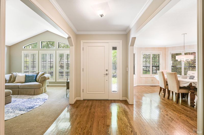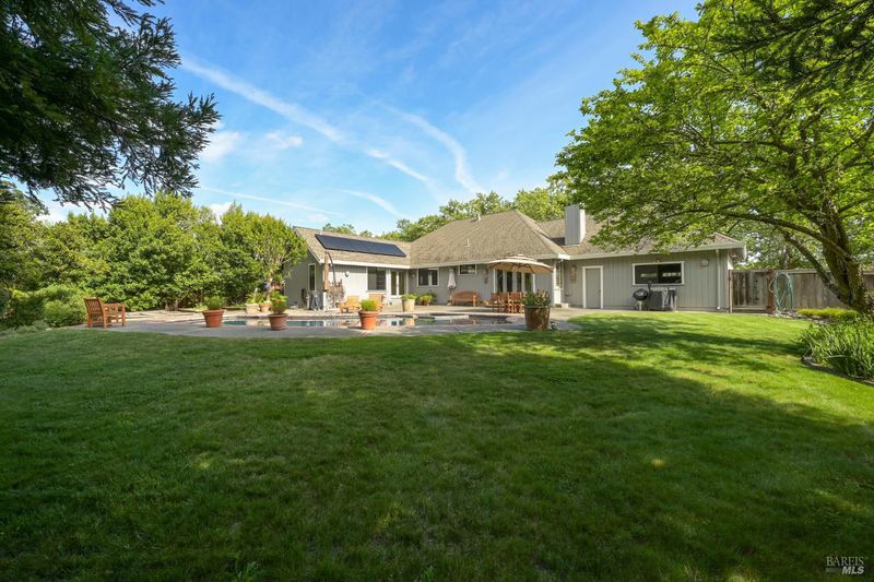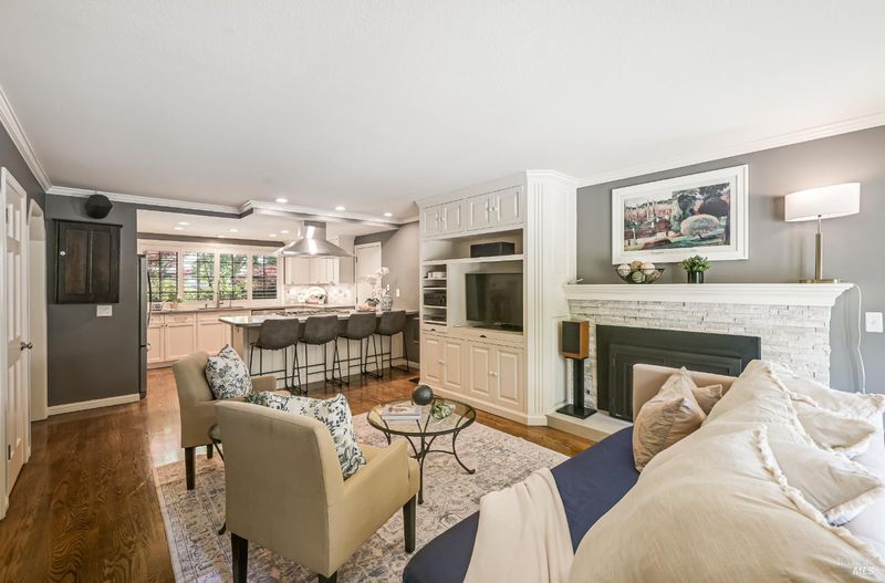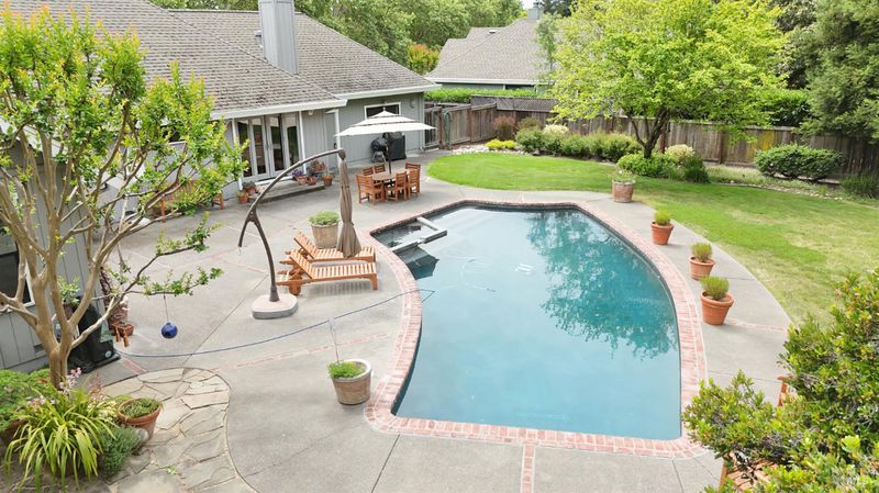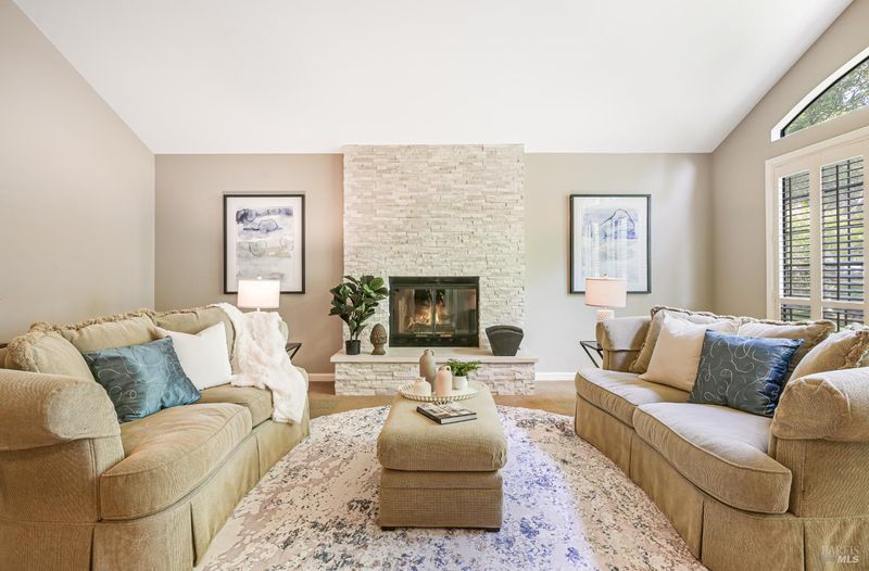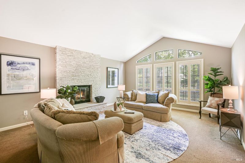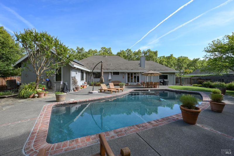 Discover refined, single-level living in this exquisite residence within the prestigious, gated enclave of Lakewood Hills. Designed with an emphasis on both elegance and ease, the home offers a seamless floor plan ideal for intimate everyday living and elevated entertaining alike. Offering just under 2,000 square feet, the home features three generous bedrooms and two full bathrooms. Two fireplaces add warmth and charmone in the main living room and another in the cozy family room, which opens to the updated kitchen for a welcoming, connected feel. A formal dining room with rich wood flooring creates an ideal space for hosting friends and family. Step outside to your own private retreat, where the landscaped backyard features a sparkling pool, a spacious pool deck, and mature trees and gardens that provide both beauty and privacy. The two-car garage includes a special feature; a custom wine cellar with room for over 100 bottles. Lakewood Hills residents enjoy a variety of amenities, including a community pool, tennis courts, scenic paths, and a stunning lake with local wildlife, bringing together comfort, convenience, and a relaxed lifestyle.