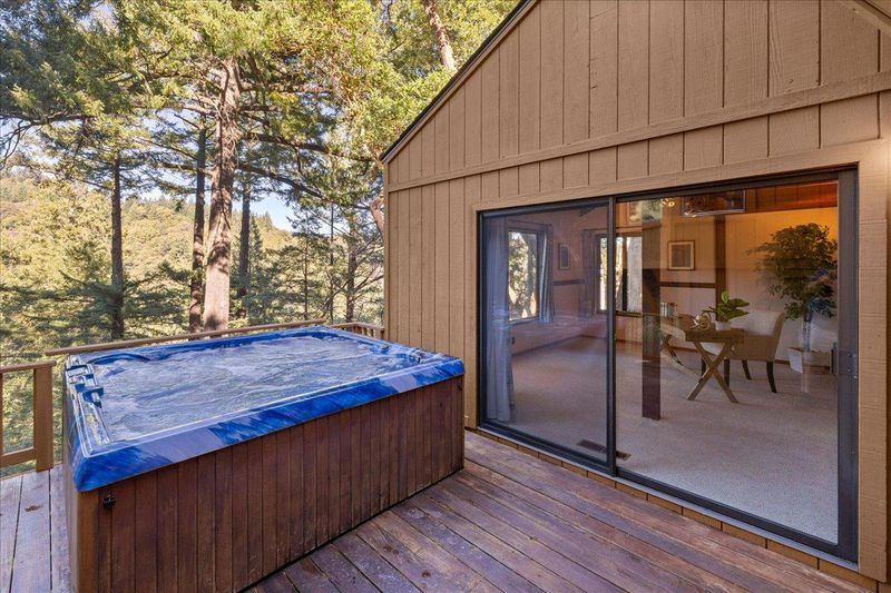 Escape to tranquility in this stunning home nestled in the forest of the sought-after Las Cumbres community. Dappled in natural light through soaring skylights and surrounded by nature, this unique home offers a seamless blend of rustic charm and modern comfort. Step inside to discover vaulted ceilings, and an open-concept layout with multiple lofts, designed for relaxation and entertaining. The kitchen features a bay window breakfast bar, perfect for morning coffee, and flows effortlessly into the dining room and dramatic wraparound glass entertaining nook invites the outdoors in, showcasing spectacular cross-canyon views. Enjoy the ultimate in outdoor living with numerous decks, ideal for gatherings, stargazing, or soaking in the hot tub under the forest canopy. A detached garage with loft and workshop provides ample space for hobbies or a creative studio. On the grounds, you'll even find an ancient Indian grinding stone, connecting this serene setting to the regions rich history where light, space, and serenity come together in perfect harmony. Las Cumbres community residents enjoy a vibrant lifestyle with tennis and basketball courts, a sports field, swimming pool, bocce ball, community BBQ area, and playground. High-speed internet, award-winning Los Gatos High School.