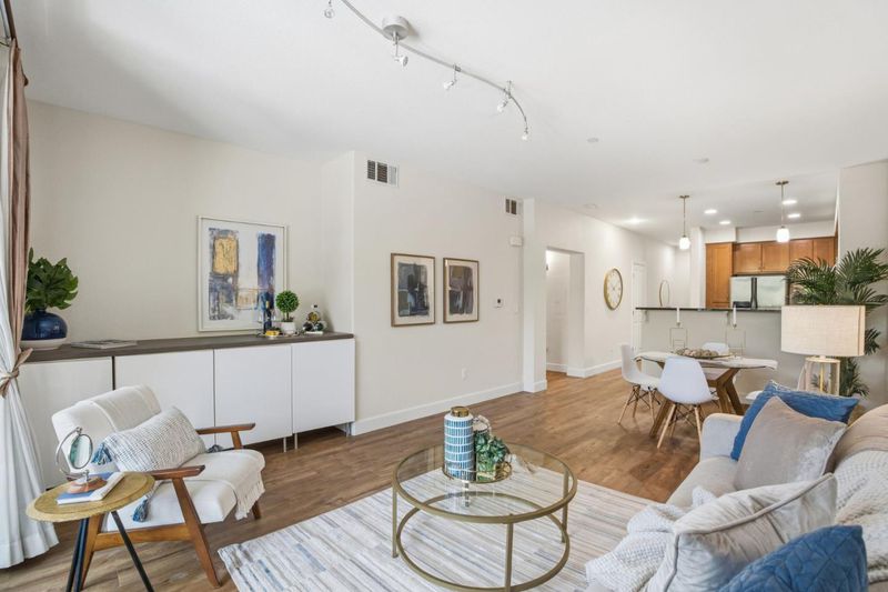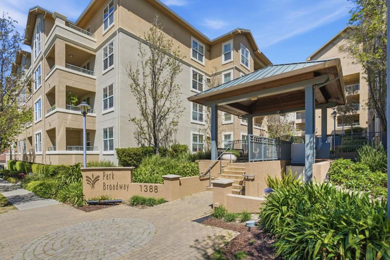 Refined 2BR/2BA in the sought-after Park Broadway community in Millbrae a - luxury condominium building first-floor home offering high ceilings, modern open floor plan, orientation along the Broadway side, providing both privacy and serene neighborhood views. 2 garage spots! The interior has been thoughtfully updated with new flooring and a fresh paint palette with modern color scheme. A contemporary kitchen with granite countertops and stainless steel appliances flows into an expansive living and dining area, designed for both entertaining and everyday living. A private balcony with additional storage extends the usable space & make this a most inviting home on the Peninsula! The primary suite boasts a walk-in closet and en-suite bath. Additional elements include a built-in office nook, in-unit laundry, central heat and air conditioning, and secured garage parking. The community features outdoor spa, the indoor fitness center, and an outdoor BBQ area! The location is close to Millbrae downtown corridor, ample dining and shopping options, as well as convenient access to BART, Caltrain, San Francisco International Airport, and major commuter routes - positioning this home as a well-balanced combination of design, volume, and connectivity.
