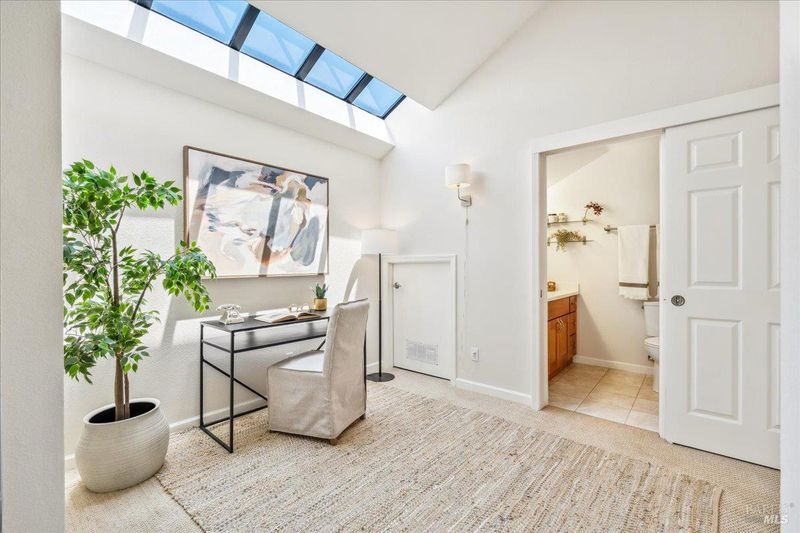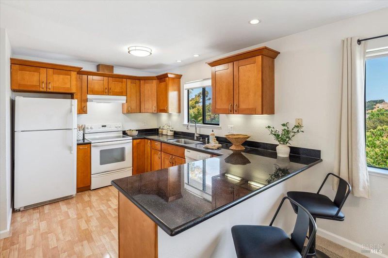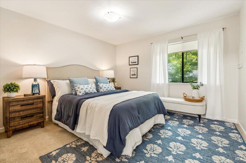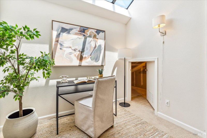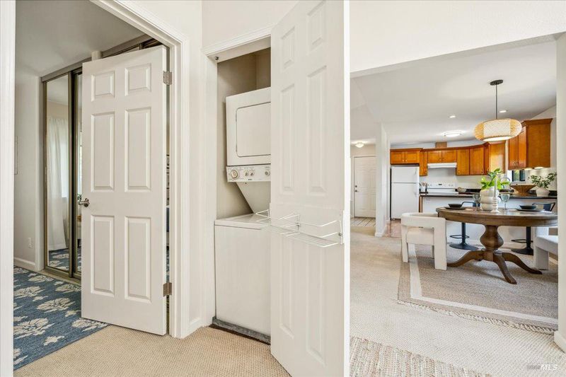 It's time to come take a look - Beautifully appointed, affordable, and spacious southern Novato condo with one bedroom + a den! This second floor single level end unit is set in a great location convenient for shopping and commute destinations. Step in from your private entry balcony to a huge living room with vaulted ceilings that feels so light and bright. The updated kitchen features gleaming slab counters and plenty of cabinet space. Find many uses for the flex space/den off the living room - and don't miss the little door in the corner leading to a surprising amount of private storage space. Remodeled bathroom with tub, shower, and large vanity. Laundry closet with included stacking washer/dryer. Bedroom offers a full wall of closet space outfitted with closet organizers. Additionally, keep cool with central A/C, and relax on the full length deck off living room to take in the trees and greenery.