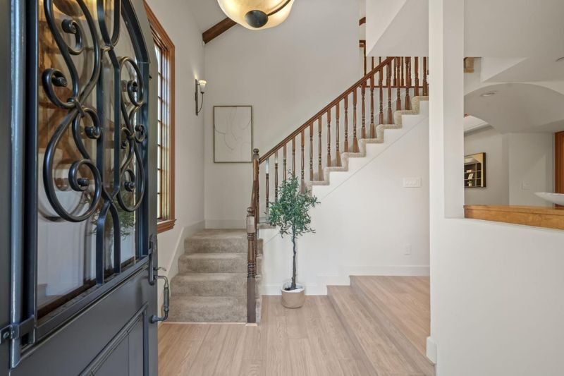 Remodeled and expanded in 2006, this Burlingame stunner offers a flexible, thoughtfully designed floor plan for modern living. Set on an oversized, private lot with mature landscaping, the home blends timeless elegance with everyday comfort. The main level features a formal living room with gas-assist wood fireplace and dining room with soaring two-story ceiling and statement chandelier. The chef's kitchen includes stainless steel appliances, granite countertops, breakfast bar, and eat-in area, opening to a home theater family room with surround sound. A laundry/pantry with additional oven and refrigerator adds convenience. The main level includes two bedrooms with a hall bath, plus a junior primary suite with en-suite bath, walk-in closet, and private rear entrance ideal for guests, extended family, or au pair. Upstairs, the primary suite offers dual walk-in closets, along with a wood-paneled library with custom shelving and sliding ladder, a 5th bedroom, and hall bath. Additional features include new flooring and paint, plus attached one-car garage. The backyard is designed for California living with a built-in BBQ, plumbed gas firepit, and water feature surrounded by a sunny yard and lush landscaping. Walk to top-rated Burlingame schools, Caltrain, and downtown Burlingame.
