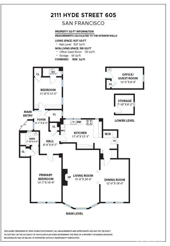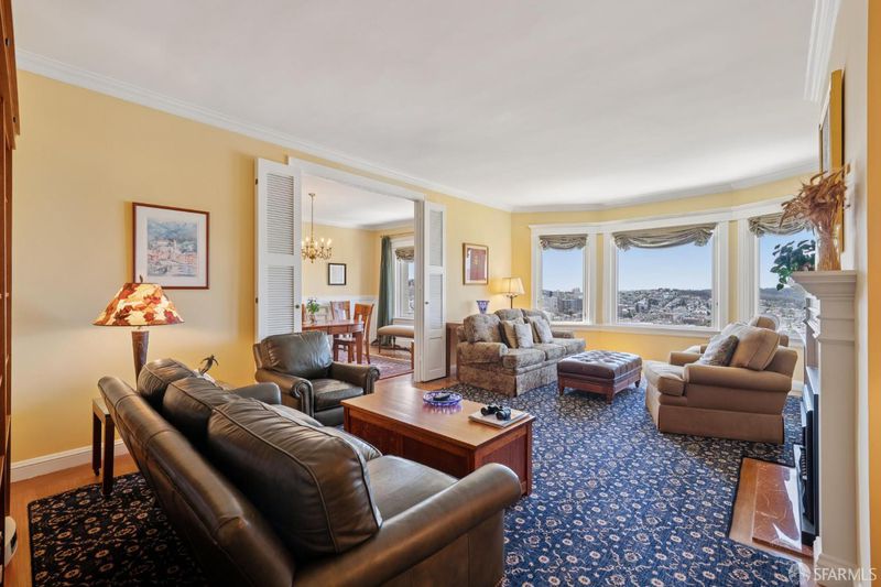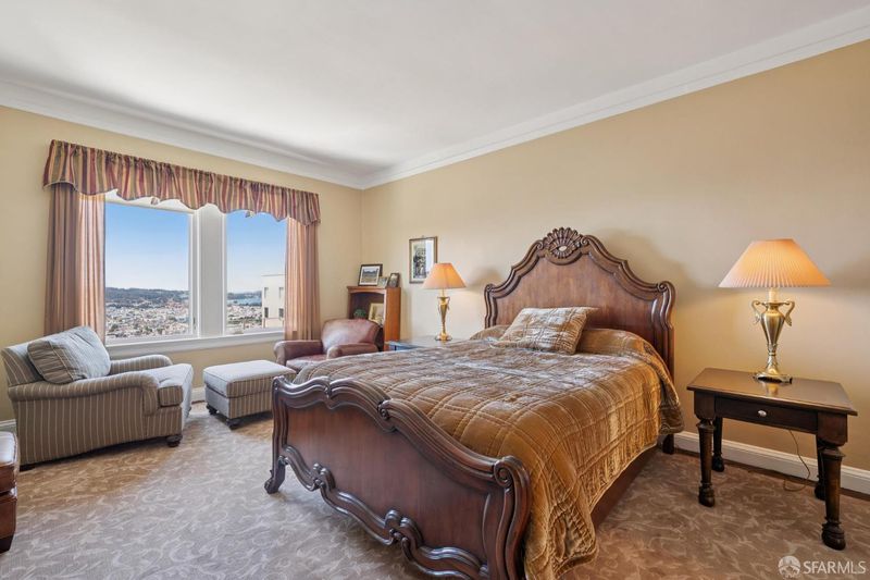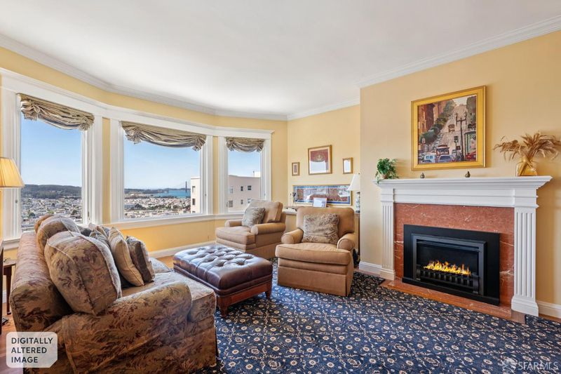 Welcome home to 2111 Hyde St #605. This exquisite and rarely available penthouse level property at the iconic Capo di Monte enjoys breathtaking views of the City, G.G. Bridge and Presidio through expansive windows in the living room, dining room and primary suite. Situated on the quiet west side of the building, this spacious and sunny home boasts 2 large bedrooms with remodeled en-suite bathrooms, grand living room (with gas-burning fireplace), formal dining room and a state-of-the-art kitchen with top-of-the-line stainless appliances and butler's pantry. A remodeled bonus room with wash basin and closet on a lower level is perfect as an office or guest room. Gorgeous wood floors, in-unit laundry, one car parking, a large storage room and much more make this a very special place to call home. Building amenities include elevator, on- site concierge, club room, exercise room, courtyard and laundry room. Walk to the cafes and boutiques on Hyde, Polk and Union streets, George Sterling Park & Alice Marble Tennis Courts. Walk Score 96 - walker's paradise. 2111 Hyde #605 is an ideal place to call home or enjoy as pied-a-terre.