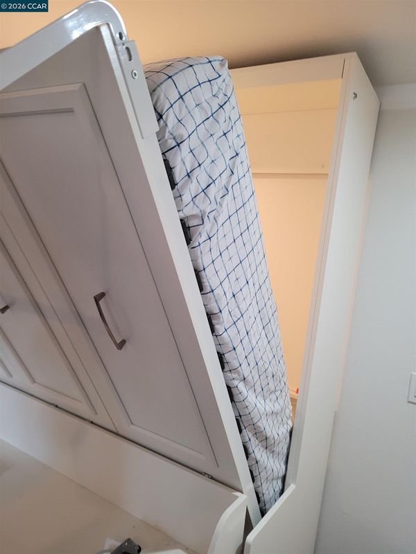Lowest price in Redwood City!! You have been waiting a long time to buy your first home! Experience effortless urban living in this stylish studio condo ideally located in the heart of Redwood City. Featuring a thoughtfully designed open-concept layout, this unit offers a bright living space with abundant natural light, elegant crown molding, sliding glass door that leads to a quaint patio space, a functional kitchen with stainless steel appliances, and a comfortable queen murphy bed that folds up to a work station to maximizes space and efficiency. This unit comes with an AC unit, it's own covered parking space plus 1 additional guest parking space, and a space saving private storage locker. Residents enjoy access to community amenities, including a swimming pool, clubhouse, laundry center on the property. Ideal for first-time buyers and professionals. This studio condo offers low-maintenance living in a highly desirable location close to downtown Redwood City, parks, shopping, dining, and major commuter routes.