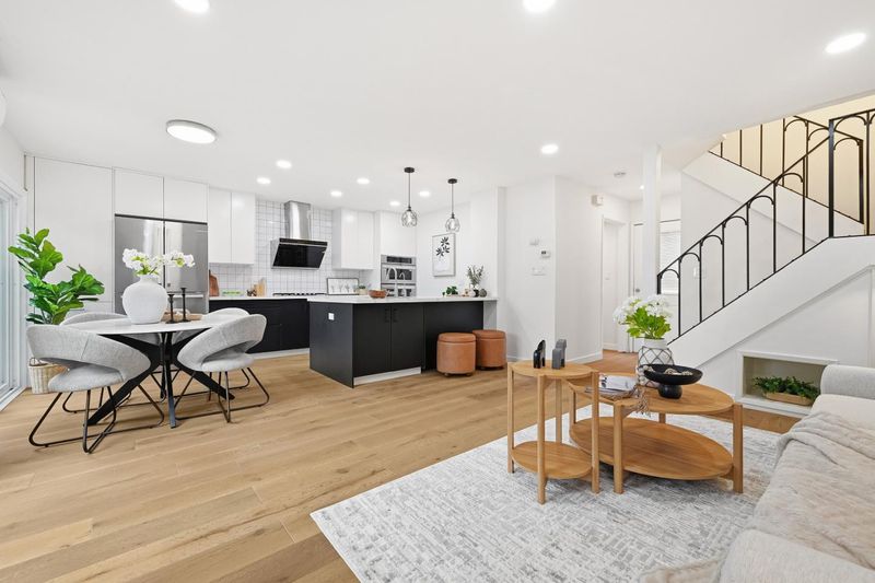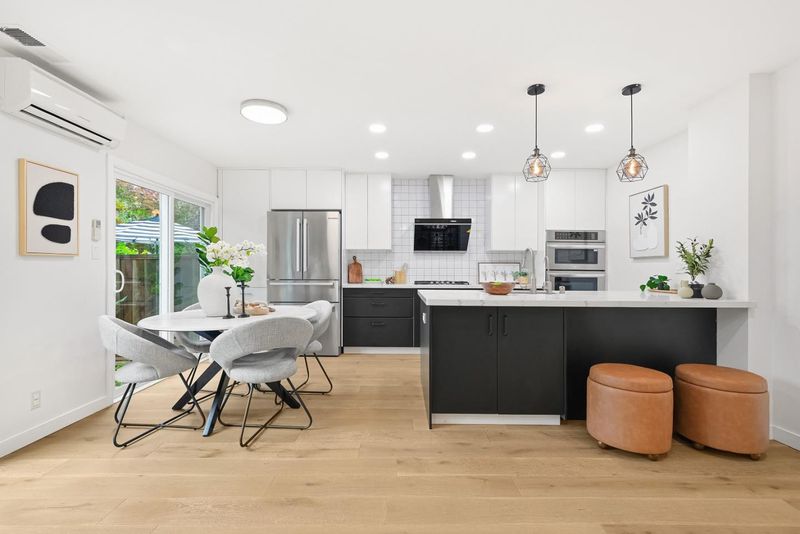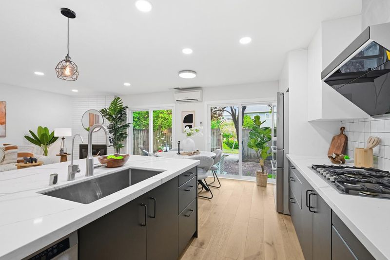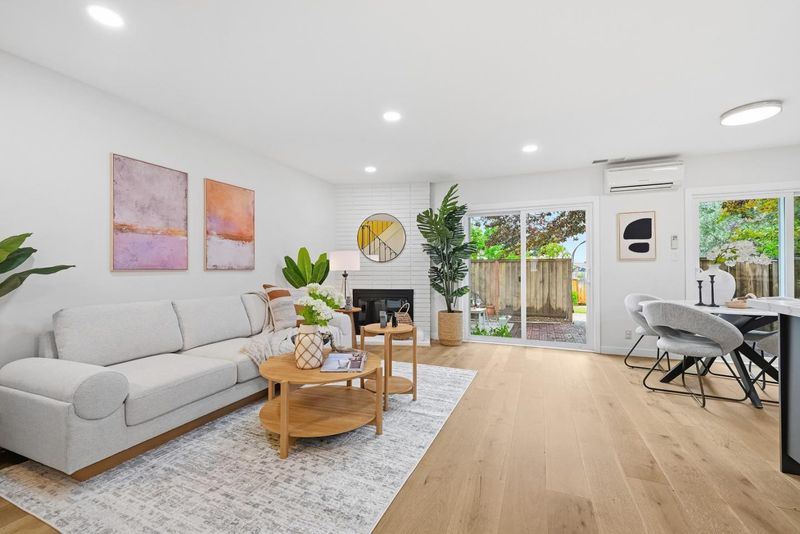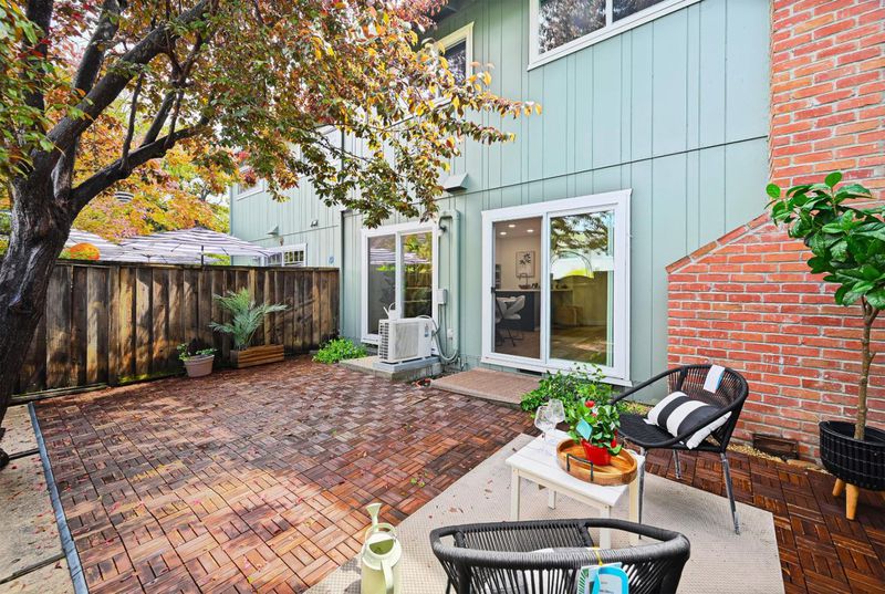 Thoughtfully upgraded and meticulously maintained by its original owners, this stylish PUD blends modern design with everyday comfort. A welcoming private courtyard features wood-style paver surfaces, creating a warm and cohesive outdoor setting that extends to the backyard. Inside, engineered wood flooring runs throughout, complemented by a refined black-accent design from sleek black cabinetry and a high-powered range hood to the staircase railingcreating a cohesive, designer-inspired look. The bright living room offers a cozy wood-burning fireplace and abundant natural light, while the separate family and dining areas open to the backyard. The upgraded kitchen features black cabinetry, stainless steel appliances, a gas range, and a large double-door refrigerator. Both bathrooms have been tastefully remodeled. The main level includes a bedroom and a full bathroom, ideal for guests. Upstairs, two well-sized bedrooms share an updated bathroom. The backyard features a blooming tree and opens directly to a lush, park-like greenbelt, offering the feel of an extended private outdoor space. Located in a quiet court, this home is served by Los Altos High School. Easy commute to major hi-tech companies: 10 mins to Google, 15 mins to Apple and Meta, and 18 mins to NVIDIA and Amazon.
