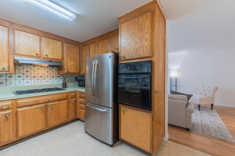 - Cooktop - Gas, Countertop - Tile, Dishwasher, Hood Over Range, Oven - Built-In, Refrigerator