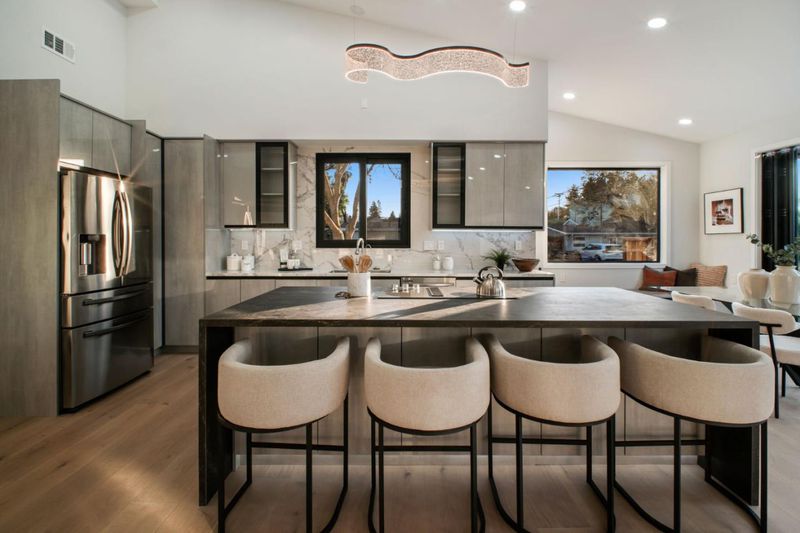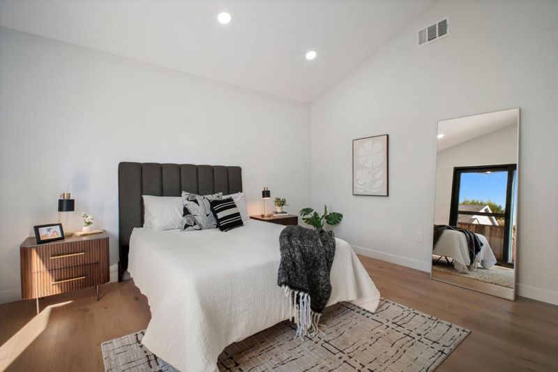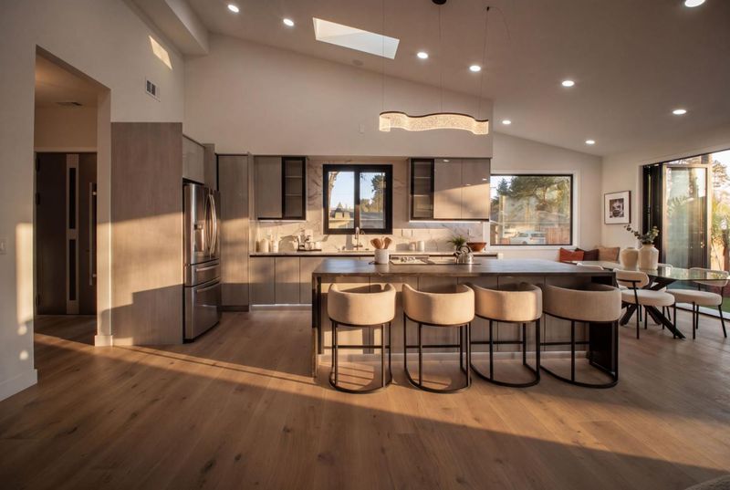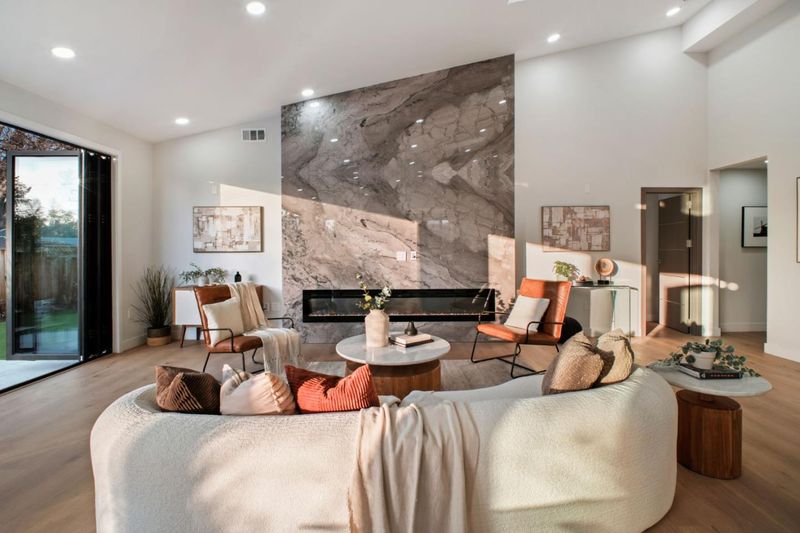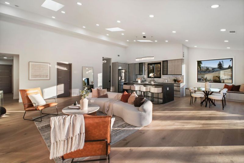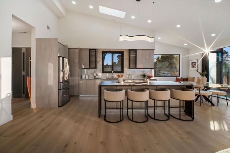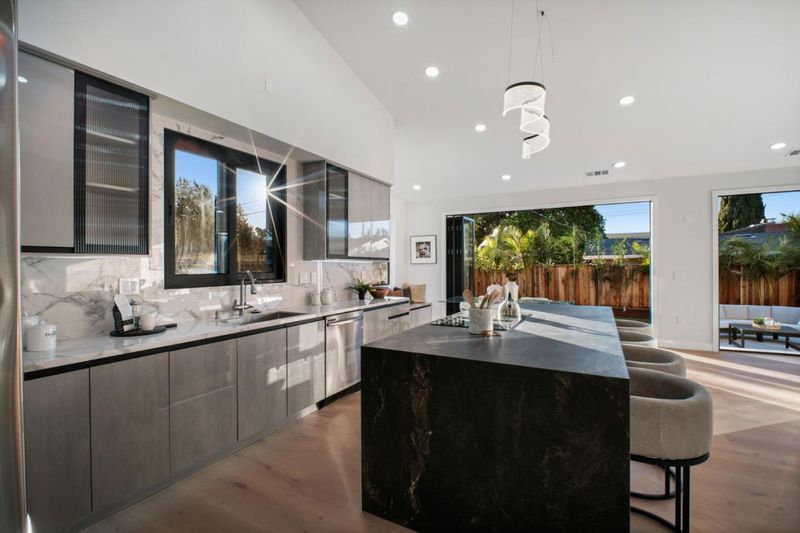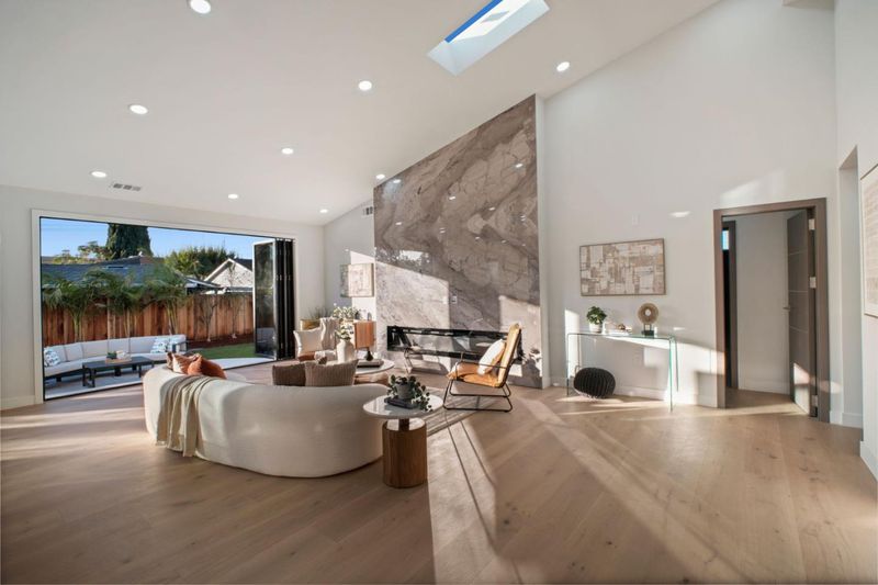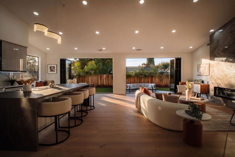 Seller requests two weekends of open houses for maximum exposure prior to offer review. Welcome to 806 Emily Dr, a beautifully rebuilt 4-bedroom, 3-bath contemporary home completed in 2026 with permits, offering 2,017 sq ft of thoughtfully designed living space on a generous 6,500 sq ft lot in one of Mountain Views most desirable neighborhoods. The open-concept layout is filled with natural light, featuring soaring raked ceilings, skylights, and two 12-ft bifold glass doors that create seamless indoor-outdoor living, perfect for enjoying the Bay Area lifestyle. The chefs kitchen is both functional and striking, anchored by a porcelain waterfall island, premium appliance suite, and sleek European-style cabinetry, all complemented by smooth wall finishes and designer lighting. Smart home features include TP-Link Matter switches, a smart video lock, Ring system, and in-wall surround sound. Bathrooms are finished with imported Spanish tile and modern fixtures. The expansive lot offers space to entertain, relax, or expand, while the location provides exceptional convenience just minutes to Google, Microsoft, LinkedIn, major commute routes, and vibrant downtown Mountain View, with Castro Streets dining, cafes, and nightlife nearby.