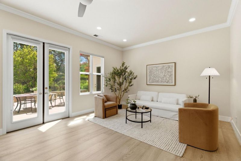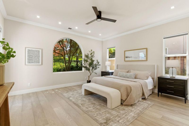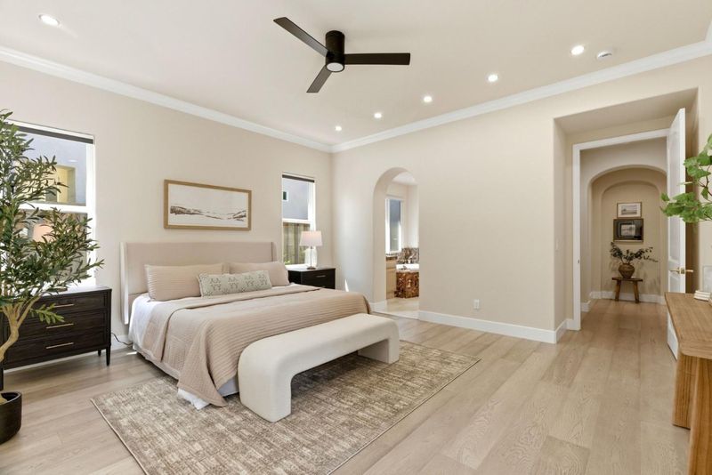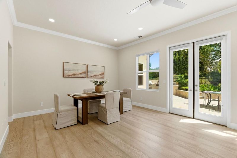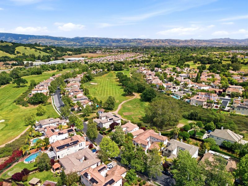 The highly sought-after Eagle Ridge floor plan featuring a ground-floor primary suite and private detached casita offers comfort and flexibility. This updated home showcases golf course views and extensive upgrades throughout. Recent improvements include updated flooring, interior paint, crown molding, window coverings, and designer lighting. Smart features include a Nest system, video doorbell, security cameras, surround sound pre-wiring, and ADT alarm system. The kitchen is ideal for everyday living and entertaining with a 6-burner gas cooktop, trash compactor, dishwasher and refrigerator, updated fixtures, and 2 newer RC drinking water filtration systems. The spacious primary suite includes a custom closet, integrated audio, remote blinds, updated fixtures, quiet exhaust fan, and spa-inspired baths with three sensor-activated Toto toilets. Additional upgrades include a Puronics water softener, 240V EV outlet, improved irrigation, refreshed iron gates, and updated bath cabinetry. Enjoy outdoor living with a private courtyard, fire pit, and built-in BBQ - perfect for entertaining. Ideally located near the Eagle Ridge clubhouse, golf course, parks, trails, playgrounds, and summer concerts, this home offers resort-style living in one of Gilroy's premier communities.