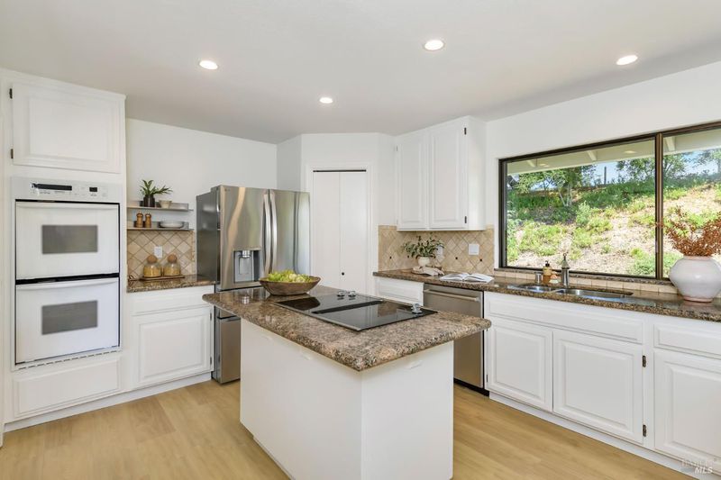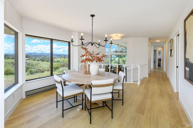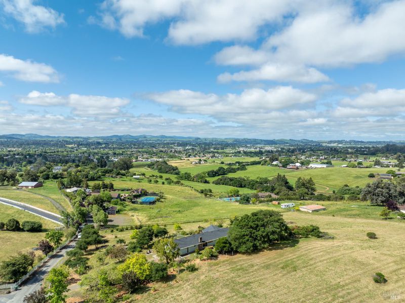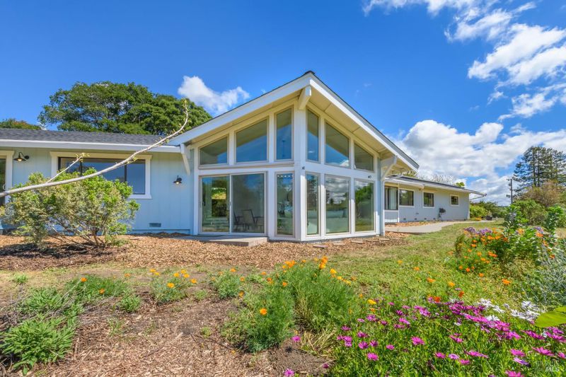 Soaring panoramic views of the Petaluma Valley and beyond. Prepare to fall in love with this classic 2,696sf ranchette set on 6.81 pastoral acres. 100 Frances Way is tucked behind a rolling grassy pasture, surrounded by gardens, more than 60 fruit and nut trees, native wildlife, pollinator gardens, and majestic trees. The flexible floor plan features three bedrooms plus an office, and a living room with a cathedral open-beam ceiling, chandelier, and floor-to-ceiling windows framing nightly sunset and city light views. The expansive primary suite offers access to a front deck with sweeping views, along with the privacy of a backyard patio and gardens. Bright, contemporary interiors include plank flooring, a wood-burning fireplace, and spa-inspired bathrooms. Equestrian amenities include a 36x36 barn with three stalls, a tack room, a small fenced horse arena, water, and electricity - perfect for animals and future farming. Recent upgrades include 21 owned solar panels, water filtration systems, leak detection, smart thermostats, and a SimpliSafe alarm system. A spacious attached two-car garage features an EV outlet and built-in storage. Ideally located close to downtown Petaluma and Penngrove and within the coveted Waugh School District yet tucked into the bucolic countryside of Petaluma, 100 Frances Way will captivate you.