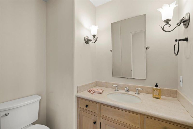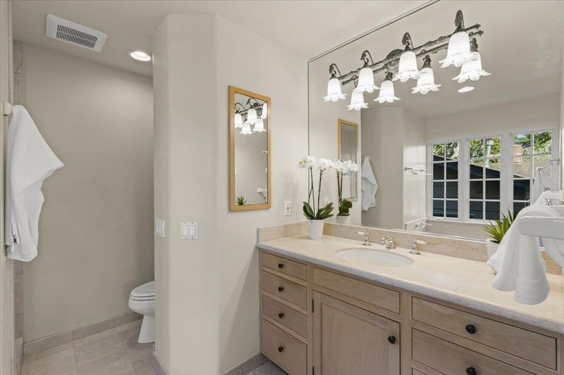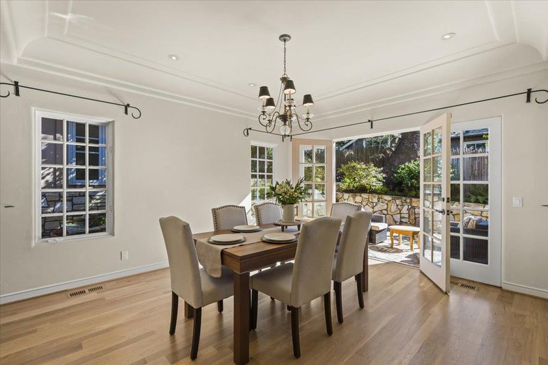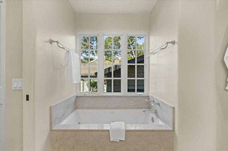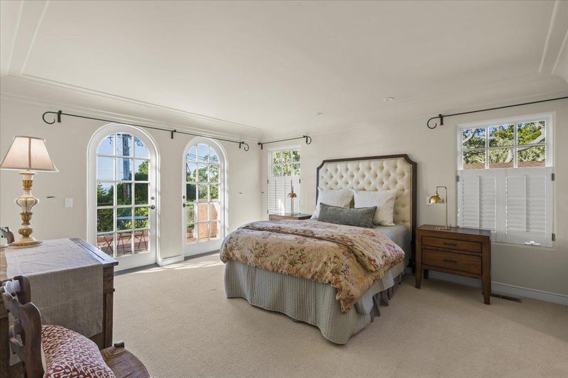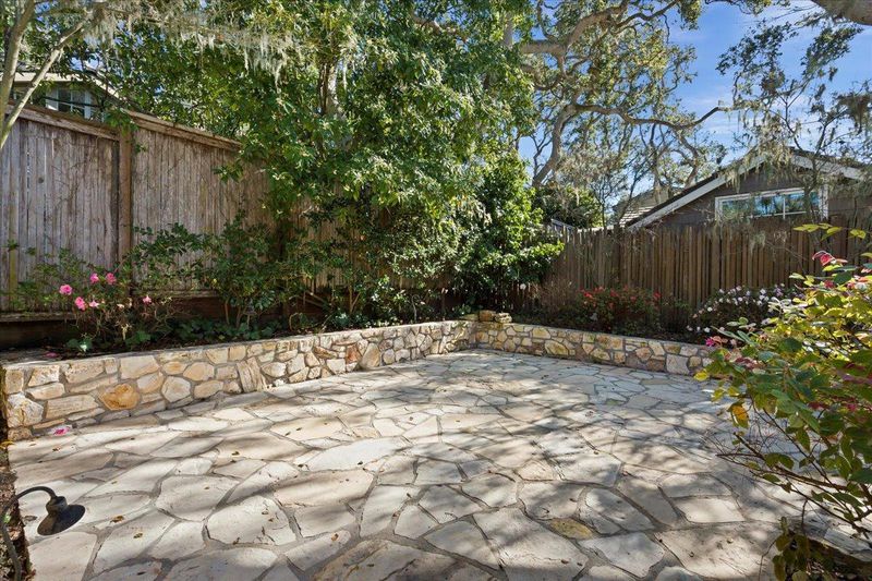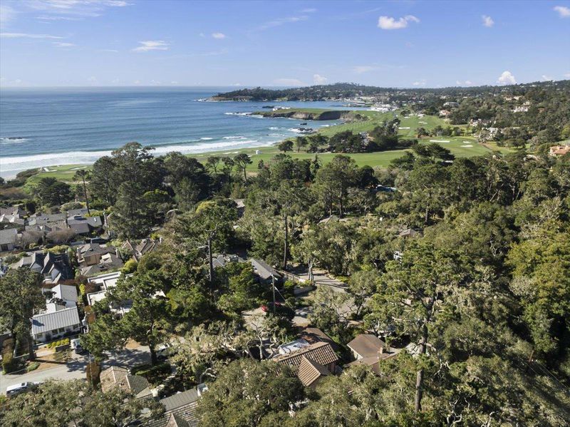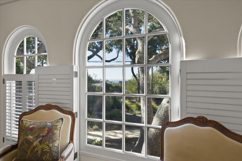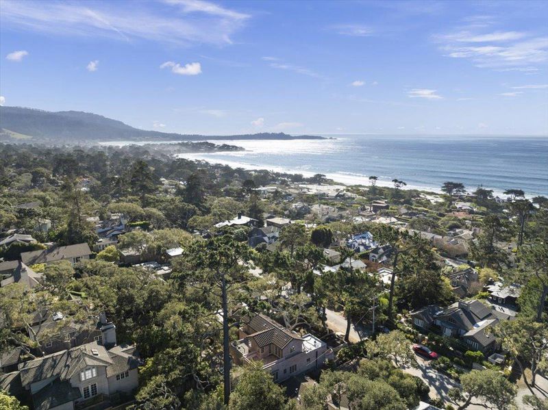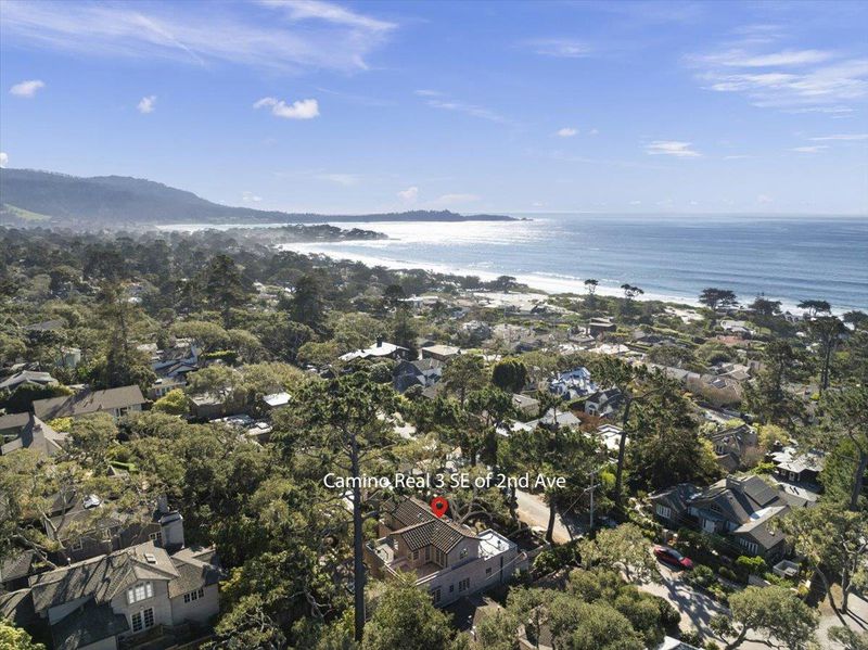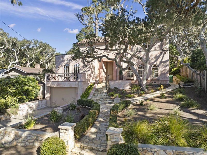 Ocean views and the sound of the waves 2 blocks from Carmel Beach. This quaint Mediterranean home is available for the first time ever. Warm hardwood floors flow from the entry to the living room, where you have ocean views and a magnificent Carmel Sand Stone fireplace with custom built-in cabinetry. Open the French doors of a light filled dining room, to enjoy 2 private patios for outdoor entertaining. Sit on your balcony off the primary bedroom for morning coffee with a view. This primary bedroom sits on the main floor, with ensuite jacuzzi tub, separate shower, walk in closets. A separate 275 sq ft guest studio with bathroom & fireplace, is connected by a stone patio. The original owner who painted here was one of Carmel's famous early California Plein Air artists. Kitchen includes granite counters, Subzero refrigerator, gas appliances plus a warmer oven. Built in kitchen hutch holds all your dishes & glassware in style. Very close to Pebble Beach gate. This home is a one of a kind gem for Carmel living.