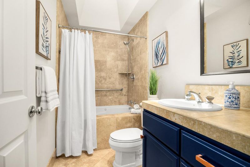 - Full on Ground Floor, Oversized Tub, Shower over Tub - 1, Stall Shower, Sunken / Garden Tub, Tile