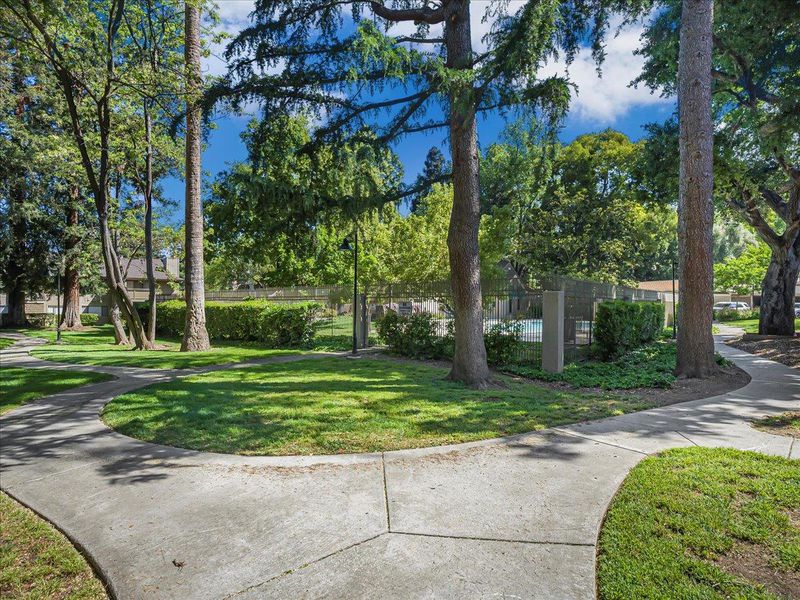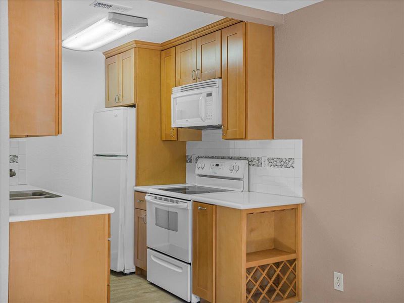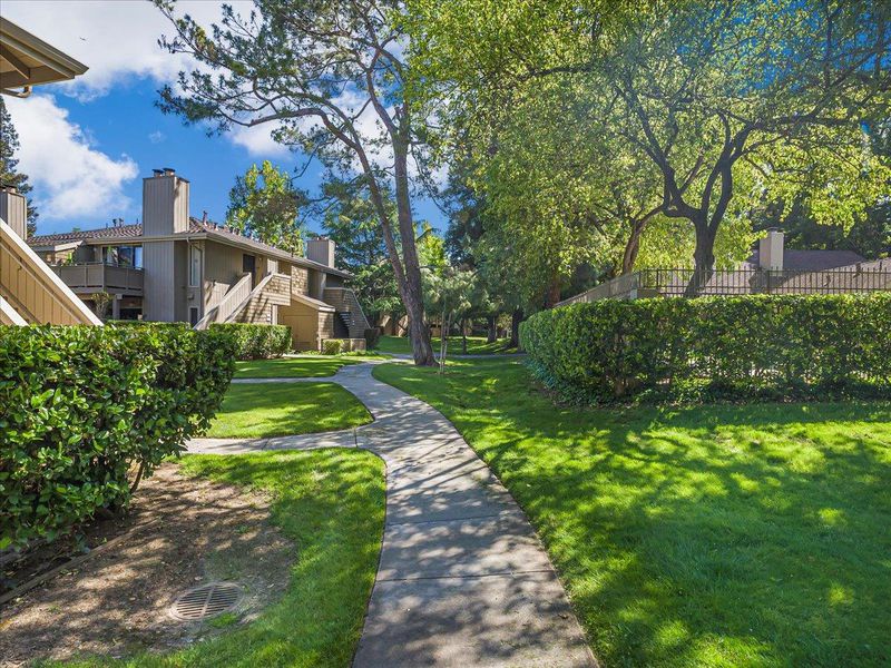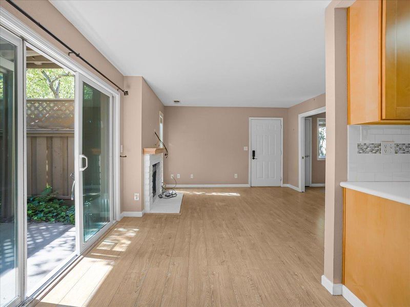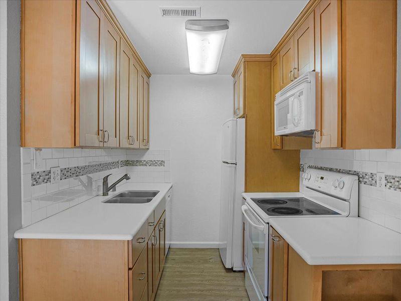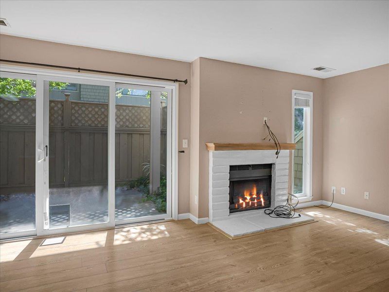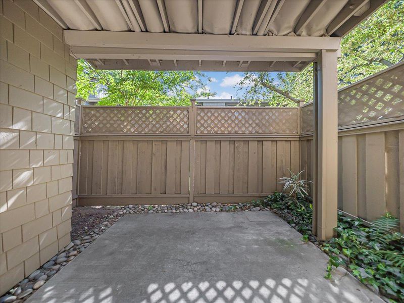 This beautifully maintained 1-bedroom, 1-bath townhouse offers the perfect blend of comfort and convenience. Situated on the ground floor and nestled along a peaceful greenbelt, the home provides a private and tranquil setting. The updated kitchen features a custom wine rack and generous cabinet space, while stylish wood laminate flooring flows seamlessly throughout. Enjoy a quiet, secluded patio complete with a storage closet - ideal for relaxing or entertaining. Additional highlights include central heating and air conditioning, in-unit washer and dryer hookups, and a cozy wood-burning fireplace. Residents benefit from well-maintained grounds and access to community amenities including a pool, spa, and clubhouse. Ideally located within walking distance to Target, Safeway, and a variety of dining and retail options at the Village Oaks shopping center.
