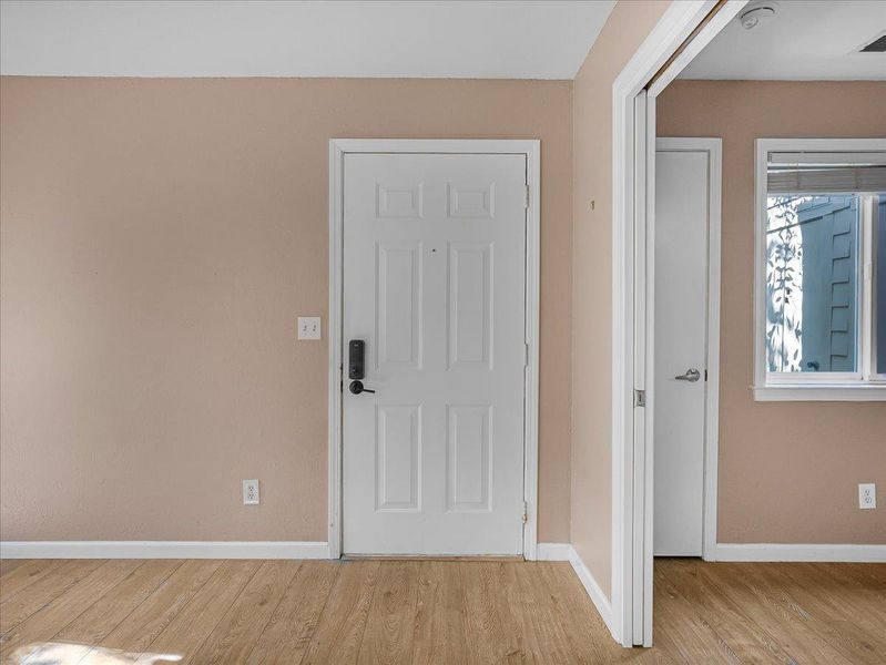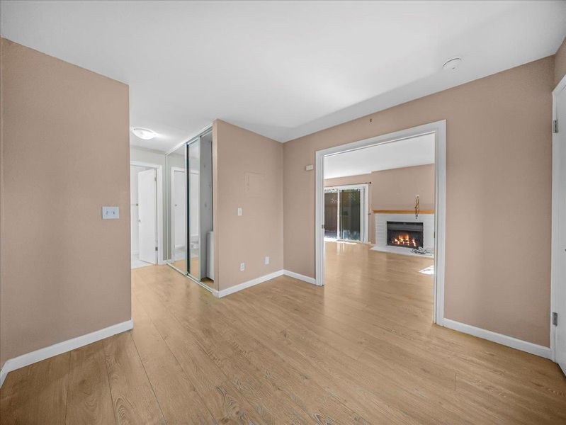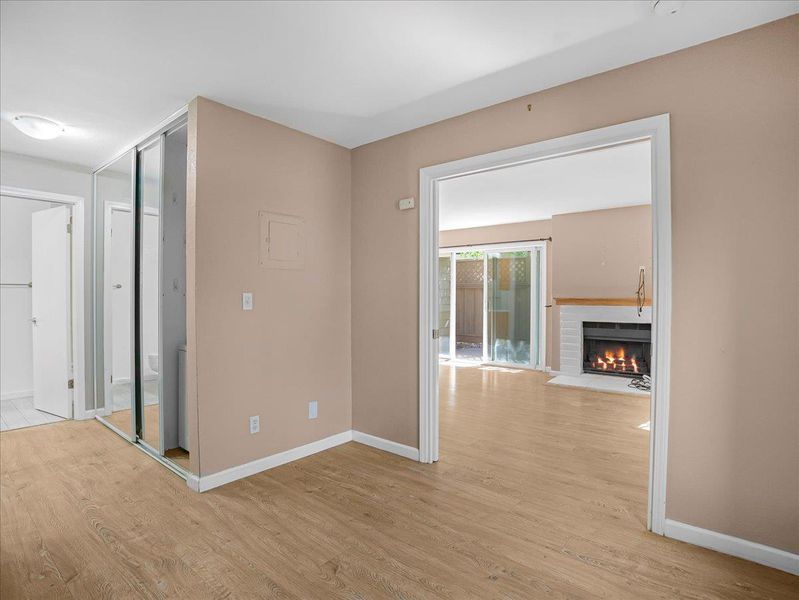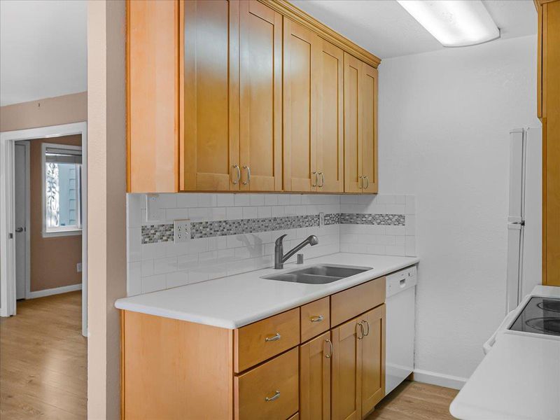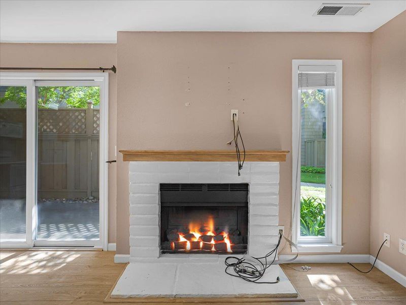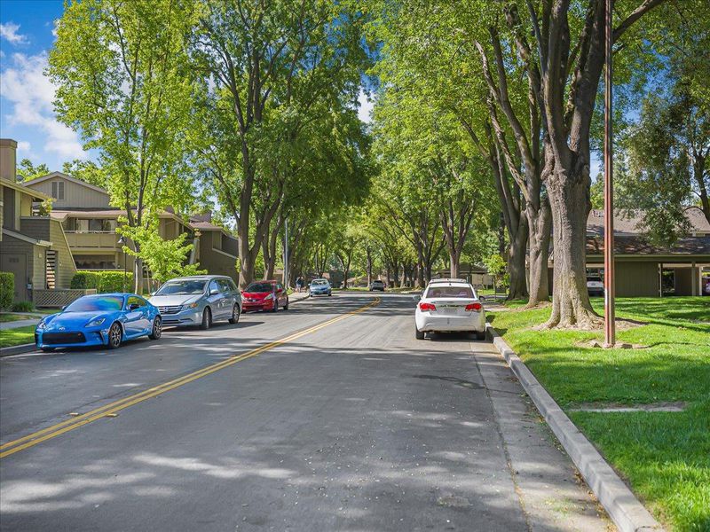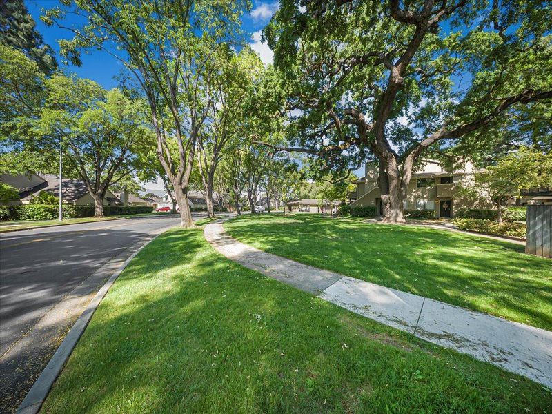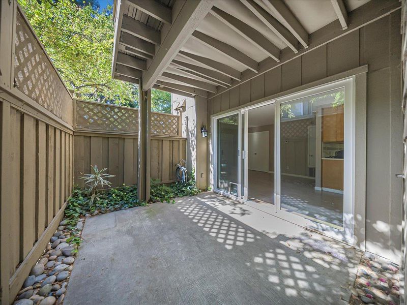 This beautifully maintained 1-bedroom, 1-bath townhouse offers the perfect blend of comfort and convenience. Situated on the ground floor and nestled along a peaceful greenbelt, the home provides a private and tranquil setting. The updated kitchen features a custom wine rack and generous cabinet space, while stylish wood laminate flooring flows seamlessly throughout. Enjoy a quiet, secluded patio complete with a storage closet - ideal for relaxing or entertaining. Additional highlights include central heating and air conditioning, in-unit washer and dryer hookups, and a cozy wood-burning fireplace. Residents benefit from well-maintained grounds and access to community amenities including a pool, spa, and clubhouse. Ideally located within walking distance to Target, Safeway, and a variety of dining and retail options at the Village Oaks shopping center.