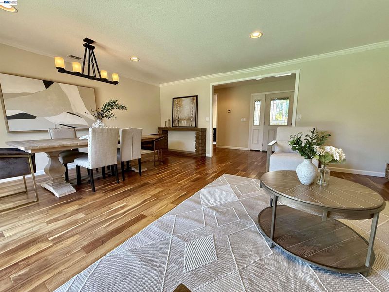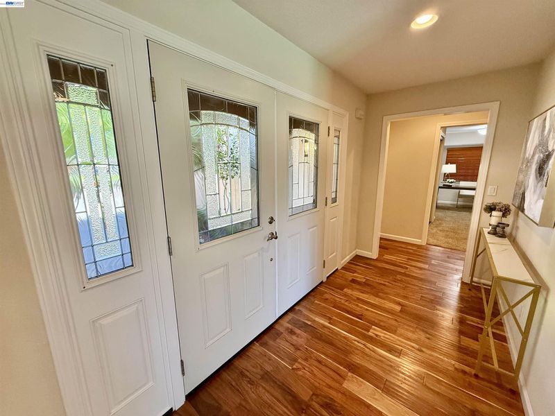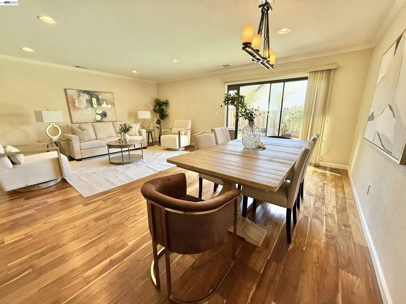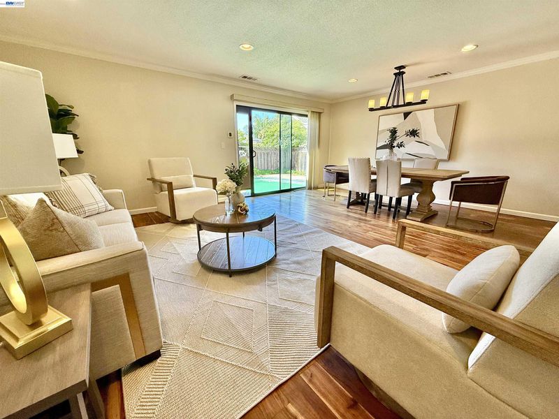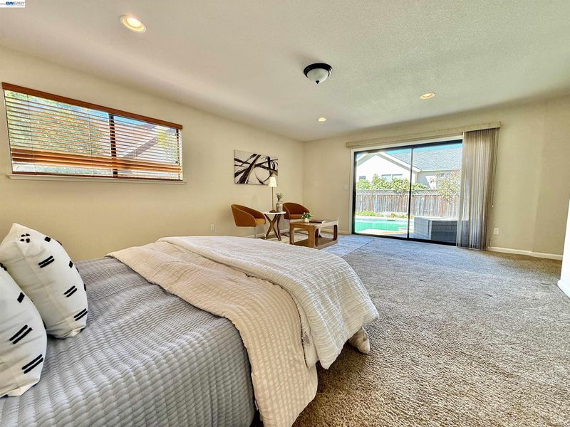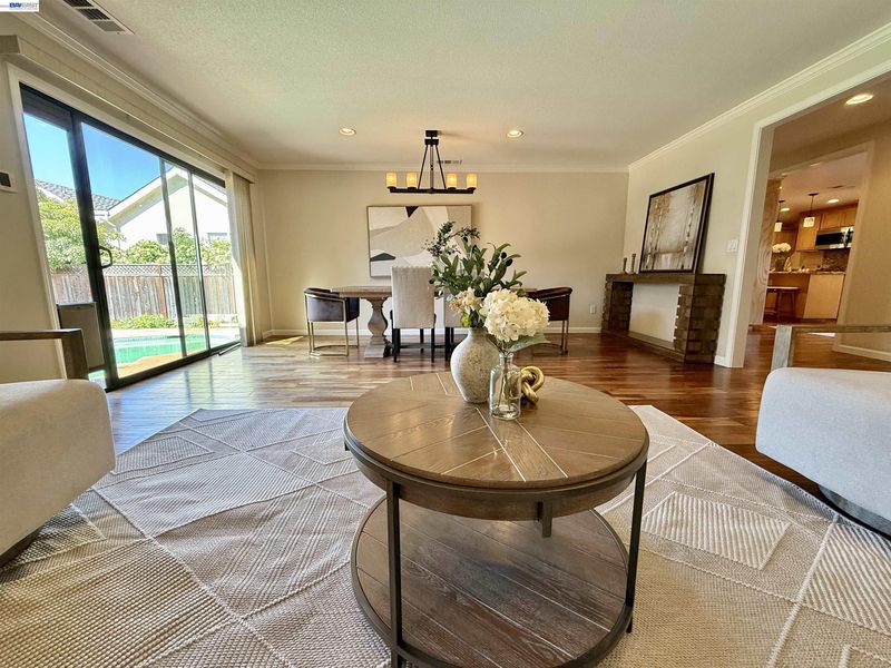 Incredible custom home set on a huge lot, offering exceptional space, versatility, and endless possibilities, including potential for an ADU. The expansive front yard is a true park-like setting, featuring beautiful mature trees, lush landscaping, and a welcoming front deck. Step inside to find stunning acacia wood floors that flow throughout the home, creating warmth and elegance. The formal living and dining room overlook the backyard, providing a picturesque setting for gatherings and everyday living. The updated kitchen features beautiful countertops, stainless steel appliances, and a cozy eat-in area, perfect for entertaining and daily enjoyment. The spacious family room offers plenty of room to relax and spend time with family and friends. Designed with flexibility in mind, this ideal floor plan is perfect for multigenerational living, featuring two primary suites: one on the first floor and another on the second floor. The first floor includes three bedrooms and two and a half bathrooms. The second level offers a primary suite with balcony, large walk-in closet and gorgeous bathroom. Additional upstairs bedroom has its own private bathroom. Step outside to enjoy the expansive grounds that truly set this property apart. The backyard is a tropical oasis, complete with a sparkling saltwater swimming pool with solar, perfect for relaxing or hosting gatherings. The large lot provides incredible potential, including space for a possible ADU, gardens, or additional outdoor living areas. Extensively remodeled in 2014, this home features updated plumbing, electrical, and modern finishes throughout. Additional upgrades include a dual HVAC system, two tankless water heaters, and an insulated/sheetrock-finished garage. This is the perfect property for entertaining and enjoying quality time with family and friends while offering comfort, flexibility, and future potential.