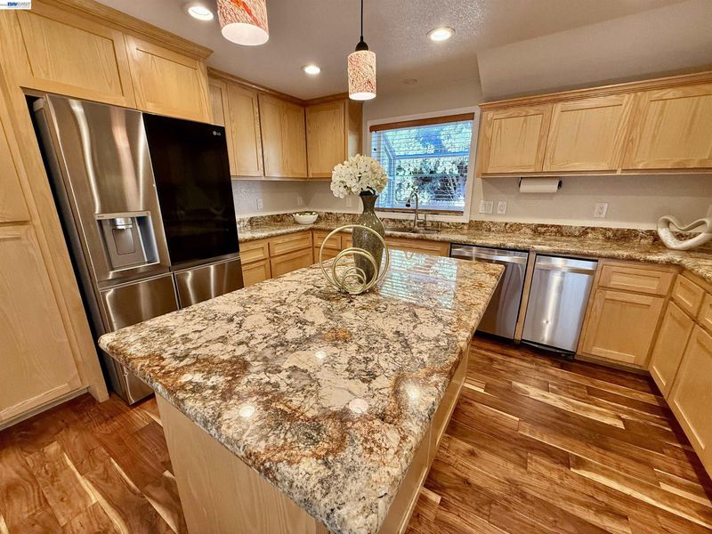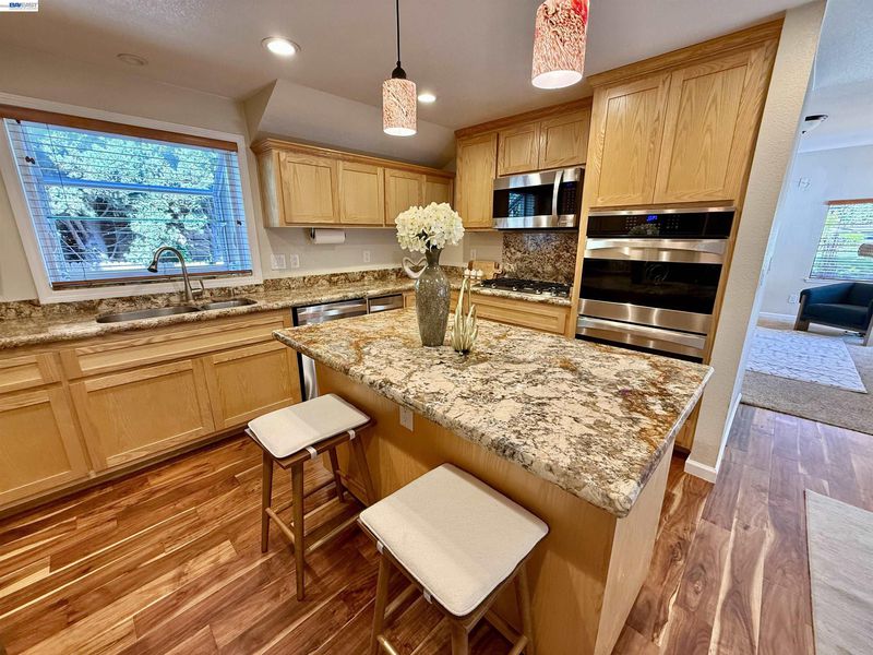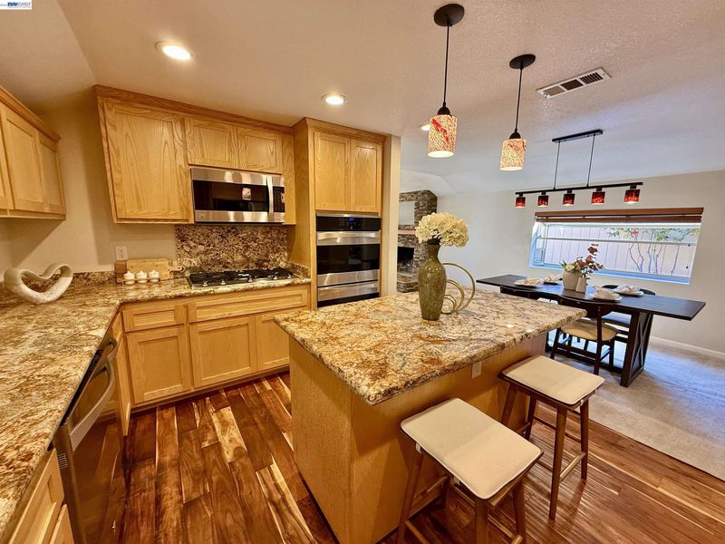 - Dishwasher, Double Oven, Gas Range, Microwave, Refrigerator, Gas Water Heater, Counter - Solid Surface, Disposal, Gas Range/Cooktop, Kitchen Island, Updated Kitchen