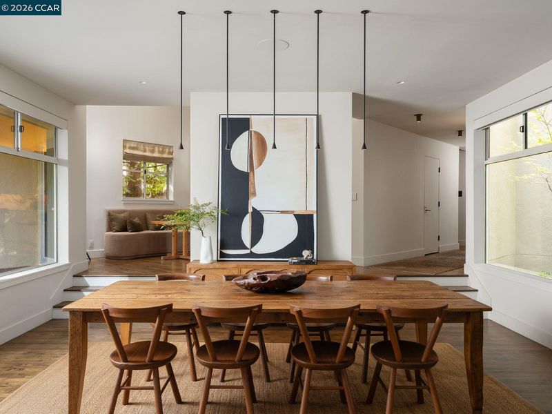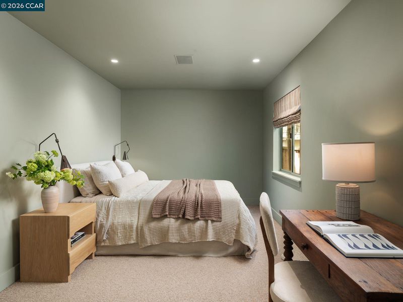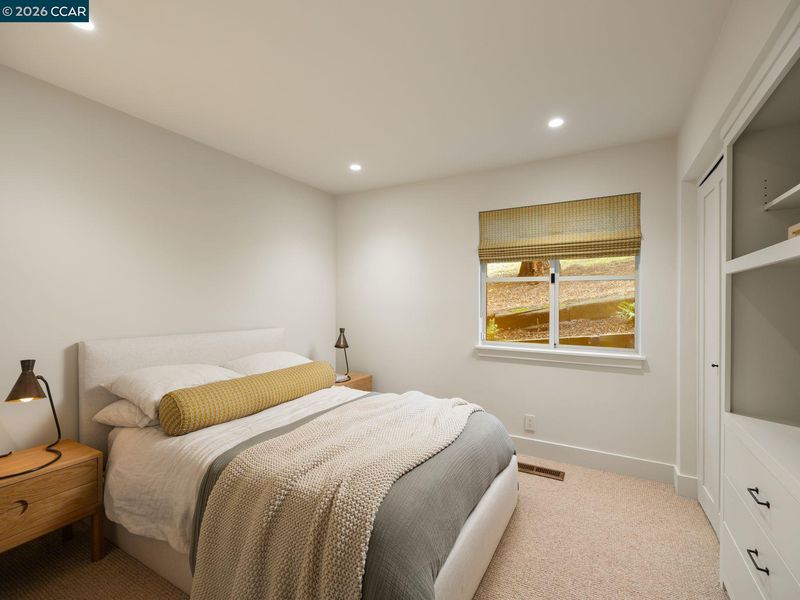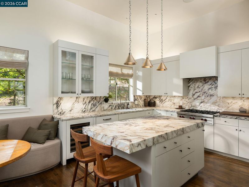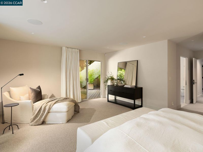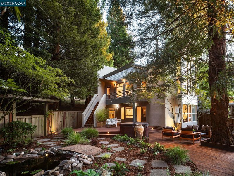 A home of rare design integrity, offering elegance and serenity on a secluded cul-de-sac in the Claremont Hills. This 3-bed, 2.5-bath home offers 2,905 sq. ft. of recently renovated living space on a double lot that spans over 14,800 sq. ft. Surrounded by a canopy of redwoods, the property blurs the boundary between architecture and landscape to create a private retreat that is still only minutes away from the Claremont Resort, Rockridge, and Piedmont Ave. Interiors by acclaimed designer Sarah Solis blend timeless materials with modern functionality. The open living areas move with ease, from a lime-washed media room anchored by a gas fireplace, through a kitchen defined by dramatic Calacatta Viola marble, soaring ceilings, and professional-grade appliances, to a light-filled great room that dissolves into the tree canopy through panoramic glass walls. In the primary suite, linen-wrapped walls produce a serene retreat, featuring a spa bath with heated floors and soaking tub; custom walk-in closets; and private garden and hot tub access. The home has fully upgraded HVAC, electrical, and Vivint security systems, multi-zone heating and air conditioning, Lutron Smart Home drapes and lights, audio with ceiling speakers throughout, and elite SubZero, Miele, and Wolf appliances.