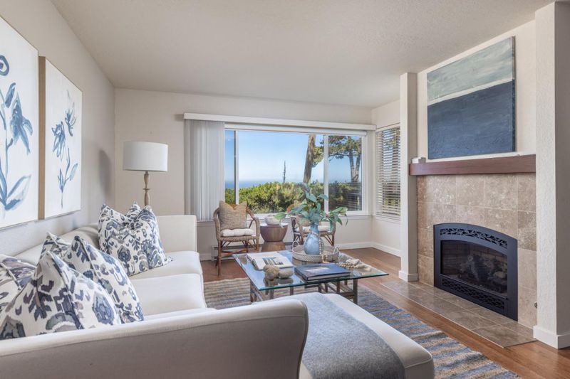 Ocean-View Pebble Beach Condo with Sunset Vistas. Located behind the secure gates of Pebble Beach, this beautifully updated two-bedroom, two-bath Ocean Pines condo offers an exceptional blend of comfort, style, and convenience. The open floor plan spans approximately 1,325 sq. ft., designed to capture stunning western-facing ocean and sunset views. The interior features hardwood floors throughout, a cozy fireplace, and updated kitchen and bathrooms with quality finishes. The first-floor location provides easy access to the exterior and includes in-unit laundry for everyday convenience. A rare find, this home also includes two separate garages, providing excellent storage and parking flexibility. Perfectly situated near Monterey Peninsula Country Club, Poppy Hills Golf Course, and just moments from world-class dining, shopping, and the iconic coastline that defines the Monterey Peninsula, this Pebble Beach retreat combines low-maintenance living with timeless coastal charm.