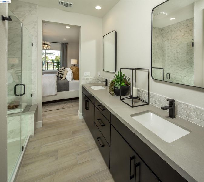 - Shower Over Tub, Solid Surface, Tile, Double Vanity