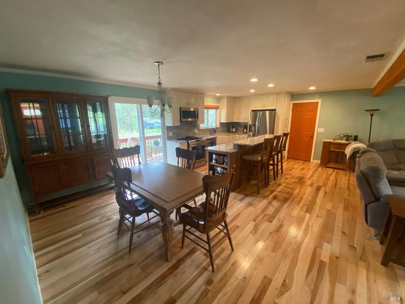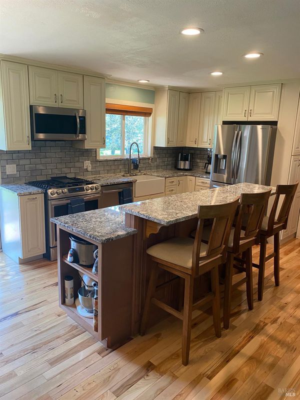 Beautiful four bedroom home on a third of an acre in the Eastern Foothills of Ukiah. Open concept living room, dining room and renovated kitchen all flow together. Chefs kitchen comes with stainless appliances, granite counters and island. Hickory hardwood floors shine in the main living areas. Master bedroom has fully remodeled en suit bath. River rock retaining walls terraced with flowers in the front and a huge fully fenced backyard, multi level decks with seedless grapes, mature peach and cherry trees. Fourth bedroom is separated from the main living area is is perfect for a home office or conversion into in-law suite. Quiet lovely neighborhood and incredible home await its new family.