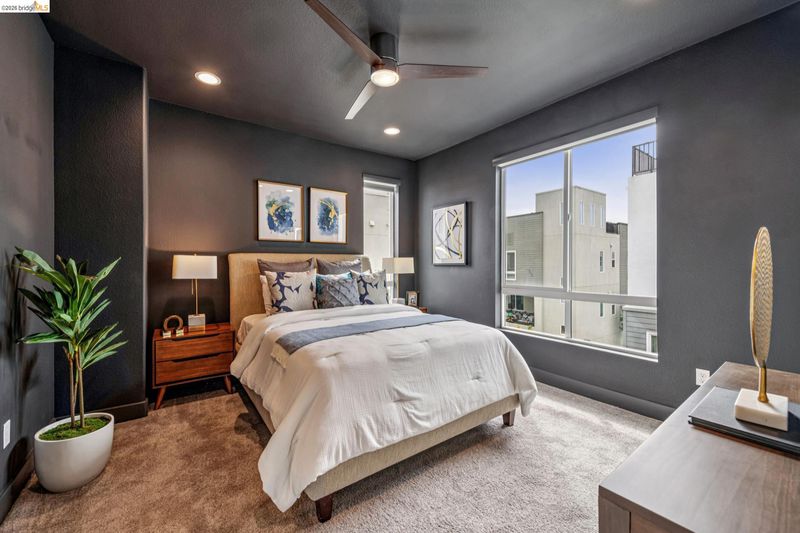 Modern 3BD/4BA end-unit townhome in Marina Bay’s desirable NOMA community. Built in 2018, this light-filled, multi-level home offers 1,739± sq ft of open-concept living with $75K in upgrades, including automated blinds, Café appliances, Monogram fridge, and a premium security system. Spacious living room flows into a sleek kitchen—perfect for entertaining. Enjoy a private rooftop deck with partial Bay views, ideal for outdoor dining or relaxing sunsets. The 2-car garage features epoxy floors and custom built-ins. Prime location near Bay Trail, parks, and Richmond Ferry, with easy access to Oakland, Berkeley, and San Francisco.