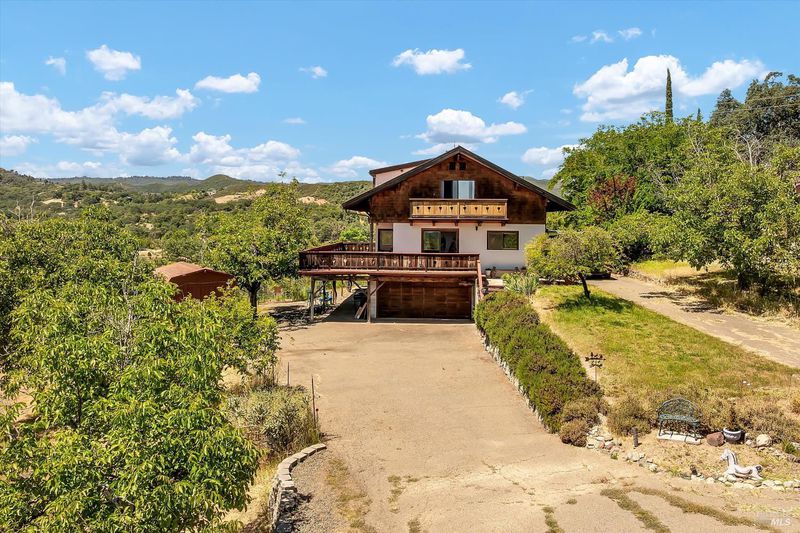 Large & lovely Chalet style home on 1 acre in Lakeport! Complete with a beautiful lake and Mt. Konocti view, this well maintained 4bed/3bath approx. 2497sqft home is perfect for so many different buyers. Main level of home features a nice open kitchen, large living room, office, laundry room, & a fantastic attached deck looking out towards the Lake and hills. Upper level includes primary bed/bath & two guest bedrooms (great layout for kids room with a neat design and pine walls!) & guest bathroom. Lower level features a locked off IN-LAW type unit with 1 full bedroom, living area (currently used as gym room) 1 full bath, & a full kitchen. Perfect set up for the in laws, teenager space, or even a vacation/short term rental unit! Has separate entrance, but can also be accessed from the main home if you'd prefer. Huge yard, fenced garden area, & lots of parking with room for travel trailer/RV, plus attached 2 car garage. Includes TWO detached nice storage sheds. Convenient location, right outside of Lakeport City limits, but only about 2 minutes drive to Main Street or Hwy 29.Tons of value here with this large & even home on some land! Owned & paid for SOLAR.