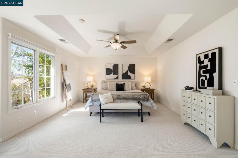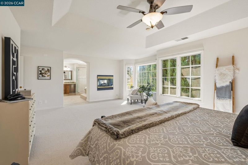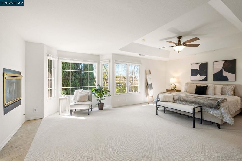 This stunning family home welcomes you with a dramatic staircase, soaring ceilings, oversized windows, and abundant natural light. The open-concept layout feels spacious and inviting featuring luxury vinyl flooring, brand-new carpet, and designer finishes throughout. The updated eat-in kitchen boasts ample cabinetry, sleek granite counters, stainless steel appliances, double ovens, and a pantry. It opens to the family room, where there is access to a large, private backyard—perfect for relaxing or entertaining. The thoughtful layout continues with a formal living room complete with fireplace, a formal dining room, a flexible main-level bedroom or home office, and a full bathroom on the first floor. The luxurious primary suite serves as a peaceful sanctuary, boasting its own cozy fireplace, dual vanities, a spa-inspired walk-in shower, a separate deep soaking tub, and an enormous walk-in closet. Upstairs, you’ll find two additional generously sized bedrooms plus a versatile loft space—perfect for kids to play