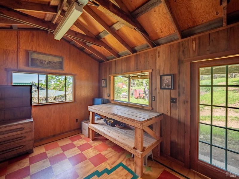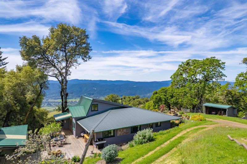 Tucked just 10 minutes from Hwy 128 above the village of Boonville, this remarkable 44.05-acre property blends natural beauty with versatile living. The main 2bed+loft/1bath home features a redwood deck with sweeping valley views, and a separate 2bed/1bath second homewith its own driveway and incredible viewsis ideal for guests or rental income. Each home has a spacious detached art studio with a bathroom, offering creative or work-from-home flexibility. The land includes two established orchards, a vegetable garden, pond, and open grassland for agricultural or grazing use. Enjoy the peace of oak-studded hills, supported by a productive well and 30,000 gallons of water storage. Multiple outbuildings, metal roofs on all structures, dual-pane windows in both homes, and PG&E power round out this impeccably maintained, turnkey retreat in the heart of Anderson Valley. Perched high above the valley and facing west, this property invites you to slow down and savor the captivating sunsets. Live, create, and grow in one of Mendocino County's most serene and inspiring settings.